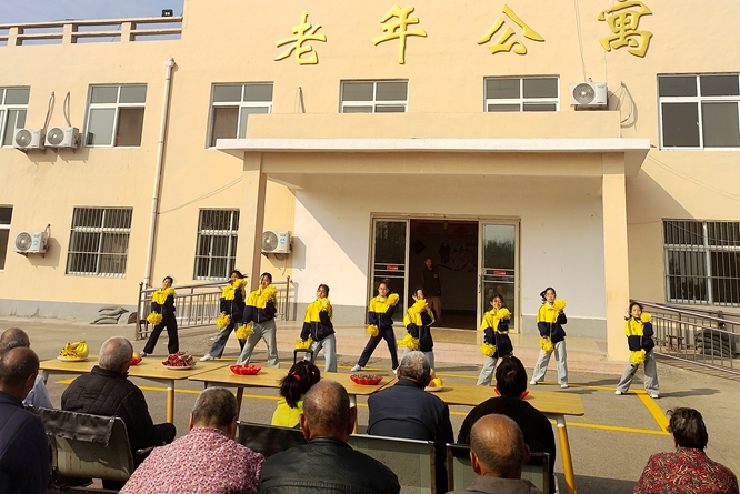 活动中,镇政府副镇长张宇代表镇党委、政府为敬老院的老人们赠送了两台全自动洗衣机,解决敬老院老人们的“洗衣难”问题。工作人员及志愿者与老人们面对面交流,耐心倾听他们的心声和需求,仔细询问老人们身体状况和生活情况,为老人们送去节日的问候和祝福。来自镇中心小学的40余名学生为老人们带来了诗朗诵、啦啦操、歌曲演唱等精心编排的文艺节目,他们用优美的舞姿、动听的歌声、精彩的表演,赢得了老人们的阵阵掌声;表演结束后,孩子们拿起为老人准备的香蕉、橘子等水果和瓜子,一一送到老人手中,老人们牵着孩子们的手,氛围温暖融洽,老人们吃在嘴里、笑在脸上、暖在心底。孩子们还积极帮助老人整理床铺、打扫卫生、聊天,用自己的行动表达对爷爷奶奶的关爱。来自木石卫生院的医务人员为老人们开展了健康义诊,给老人检查身体、测量血压、把脉问诊,仔细询问老人们的日常生活起居、饮食和身体健康情况,并根据每个人的身体状况给出了健康指导,讲解注意事项,让老人们感受到了医护人员带来的浓浓温情。