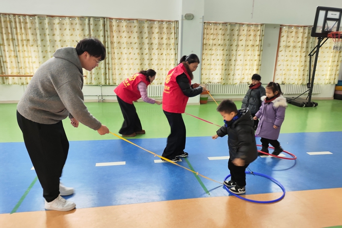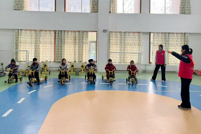 赠送围脖环节结束后,趣味游戏互动正式拉开帷幕。工作人员、爱心企业负责人和志愿者化身“暖心伙伴”,精心设计了适合幼儿参与的小游戏。你拉我跑、网球大作战、投篮比赛、骑车比赛四大趣味项目依次上演。孩子们踊跃参与,结对协作冲刺、瞄准篮筐投掷、奋勇骑行争先,在运动中锻炼了协作能力与反应力,现场欢声笑语不断、氛围热烈温馨。