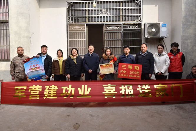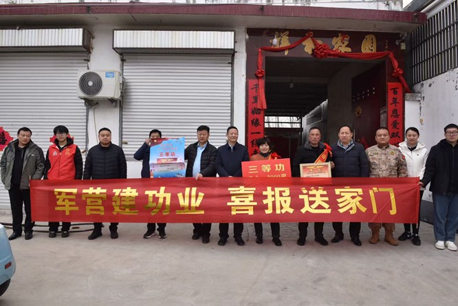 为增强军人军属荣誉感、获得感,2月10日,市退役军人事务局党组成员、副局长孙庆申,思想维权科科长杨洪河一行,在木石镇党委委员、副镇长高恒铎陪同下,先后前往独后村、西峭村,为荣立三等功的功臣张伞伞、王军等家属送上立功喜报、慰问金,慰问品。