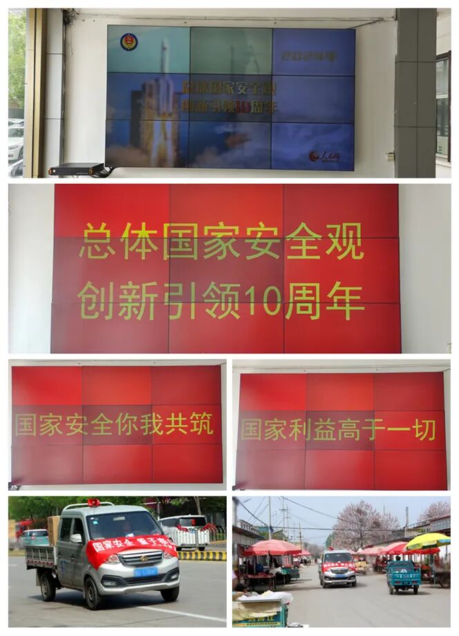 在镇会议室,南沙河镇召开2024年滕州市全民国家安全教育主题宣传周活动部署会议并组织收看了《这十年》国家安全专题宣传片,帮助大家学习国家安全知识、提高全民国家安全意识和素养;在镇主要干道,工作人员及志愿者通过设立宣传站点,张贴条幅,发放国家安全教育宣传资料,宣传车流动广播,沿街商铺、集市宣传普及国家安全知识等方式向辖区群众讲解国家安全法制、案例警示、安全防范等相关安全知识,引导辖区群众在日常生活中懂法守法,自觉抵制破坏和损害国家安全的行为,营造全民维护国家安全的良好氛围;在镇中心小学,志愿者们通过向学生们宣传普及国家安全知识,号召学生从现在做起、从自身做起,自觉抵制危害国家安全的言行,争当保护国家安全的小卫士。