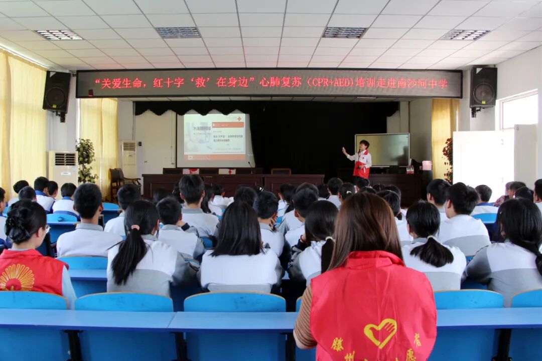 为加强应急救护知识的普及,增强校园师生们的安全意识,提高师生应对突发意外伤害的自救互救能力,4月24日,南沙河卫生健康岗、新时代文明实践所、妇联、团委、关工委等工作人员及志愿者联合在南沙河镇中学开展“关爱生命,红十字‘救’在身边”心肺复苏(CPR+AED)培训走进南沙河中学活动。培训邀请了中国红十字会救护培训师龙兴霞进行现场讲解。