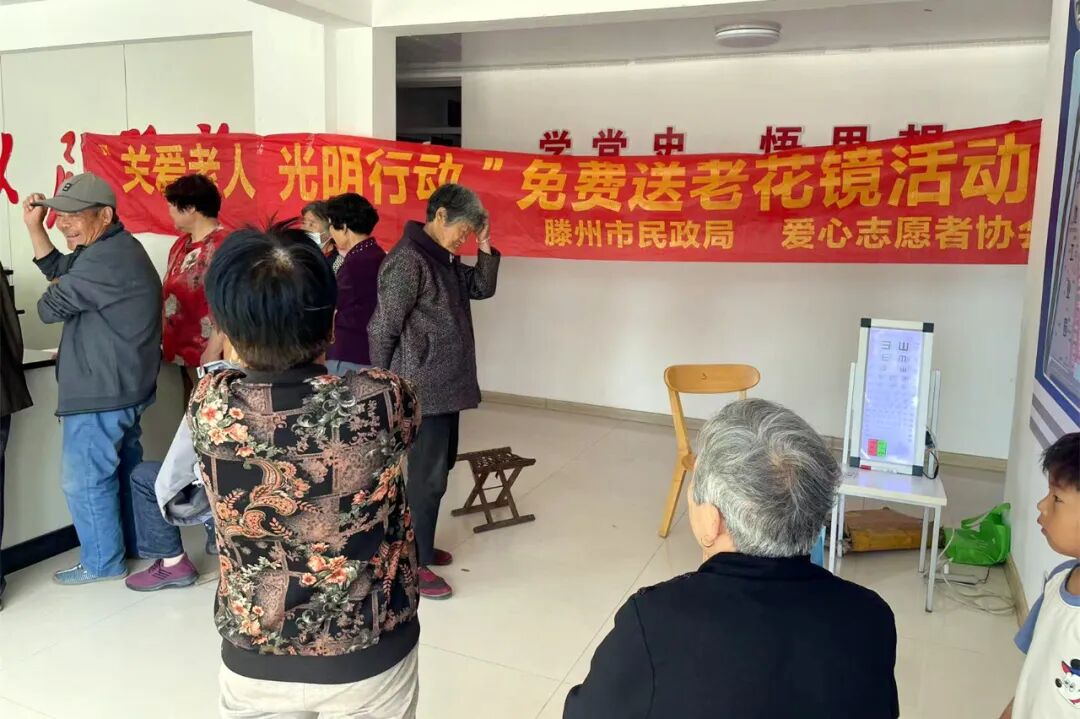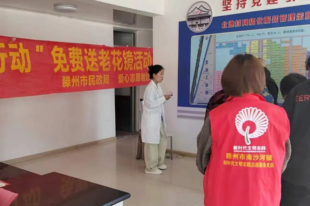 5月12日,市民政局联合滕州市爱心志愿者协会、南沙河镇民政事务岗、新时代文明实践站在北池村开展“关爱老人 光明行动”免费送老花镜活动。