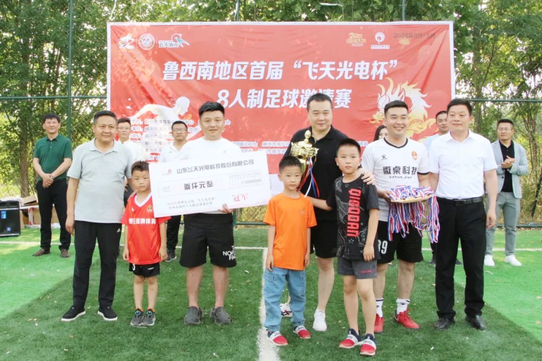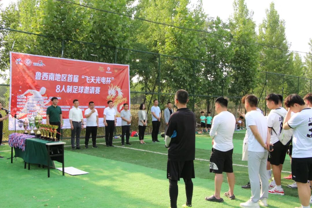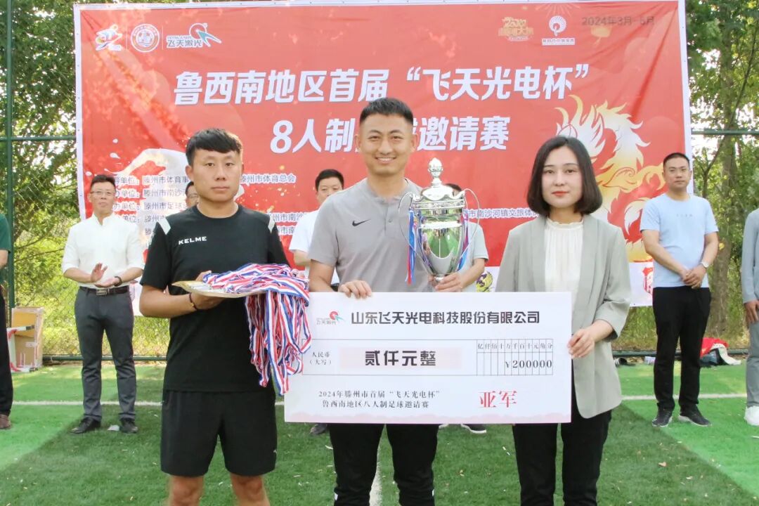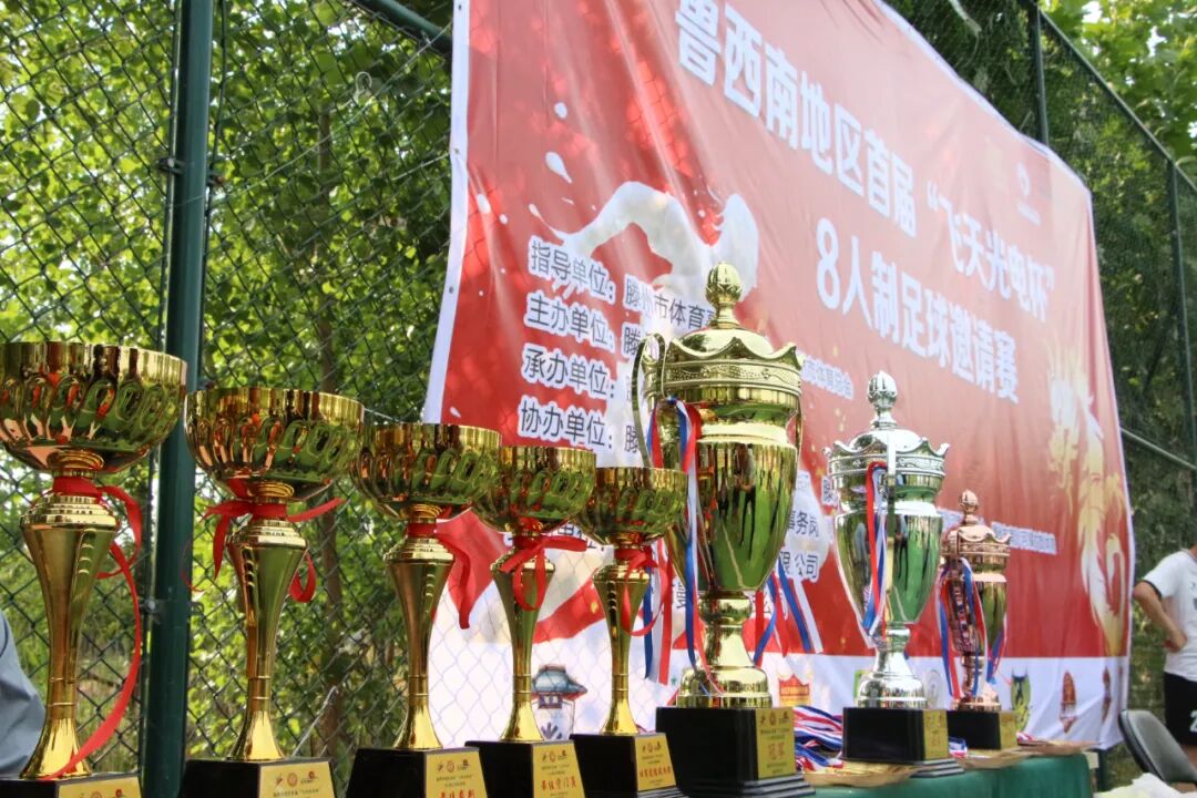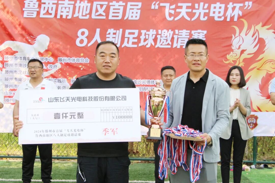 5月19日,经过两个半月9轮45场激烈比赛,由滕州市体育事业发展中心,市体育总会指导,南沙河镇党委、政府主办,滕州市足球运动协会承办,南沙河新时代文明实践所 、总工会、体育总会、文旅体岗、退役军人事务岗、团委、妇联协办的鲁西南地区首届“飞天光电杯”八人制足球邀请赛在南沙河镇漷河湿地公园落下帷幕,并举行颁奖仪式。市体育发展中心党组书记、主任丁涛,南沙河镇党委书记赵聪,镇党委副书记李雯璐(挂职),市体育发展中心党组成员、副主任刘东,南沙河镇党委委员、武装部长、宣传委员陈涛,市体育总会秘书处办公室主任冯恩源,山东飞天光电股份有限公司总经理、滕州市足球运动协会会长满中桦,相关部门负责人、参赛队伍代表等参加颁奖仪式。丁涛致闭幕词。