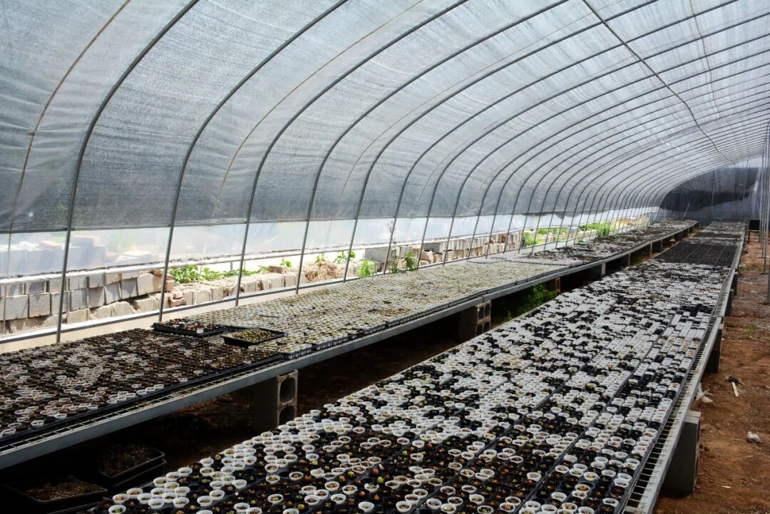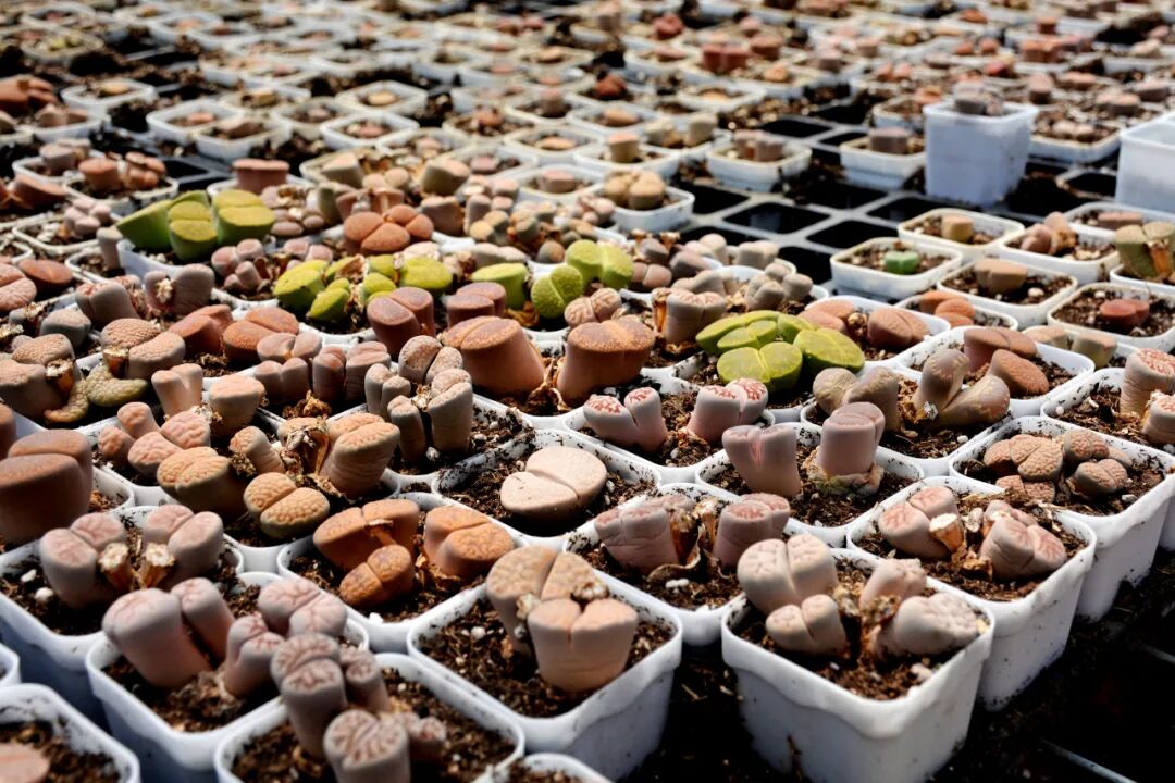 多肉植物因为萌萌的体态、超高的颜值,加上易养的特性,收获了大批消费者的“芳心”。2019年,古石四村的朱思杰和李冬梅小两口从中看到了商机,选择返乡创业,建起9个多肉种植大棚,大力发展多肉特色种植。种植品种多为生石花多肉,生石花原产非洲,常见于岩床缝隙、石砾之中,形如彩石,娇小玲珑,圆润可爱,花色丰富,观赏价值极高,被称作“有生命的石头”。
