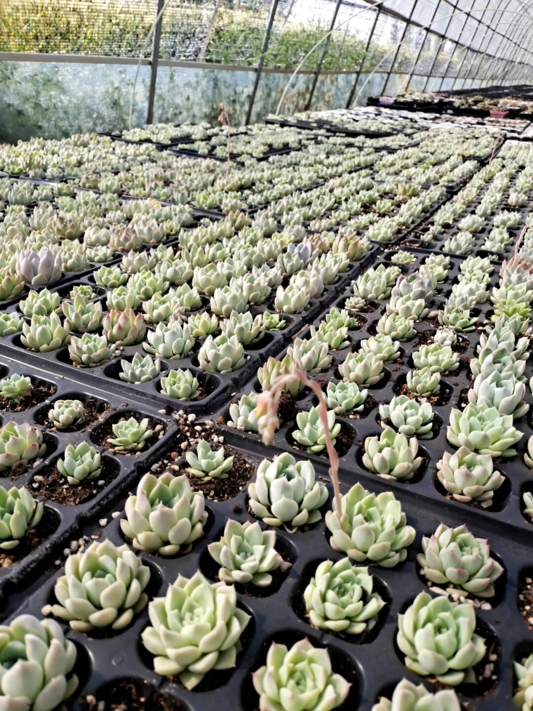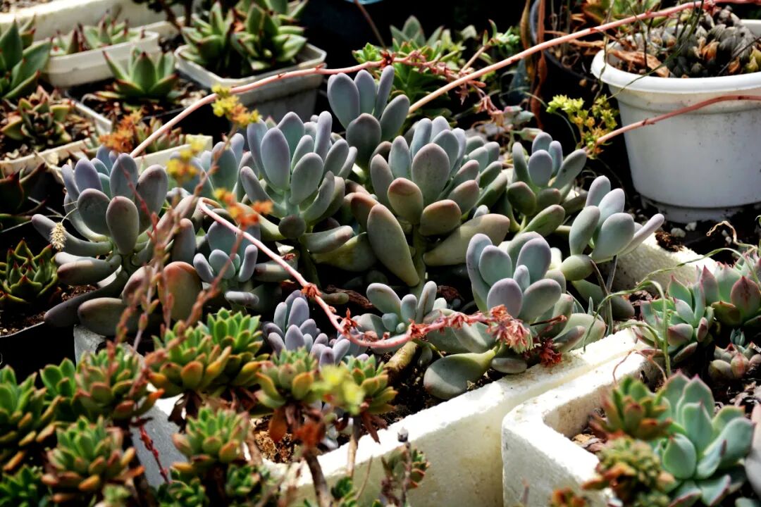 走进位于南沙河镇古石四村的小妹多肉植物大棚基地,映入眼帘的是一盆盆各色各样的多肉植物,被分门别类、整整齐齐地排在大棚里、田块上。连成片、排成行的多肉植物,或色彩斑斓,或晶莹夺目,绿意盎然,生机勃勃。