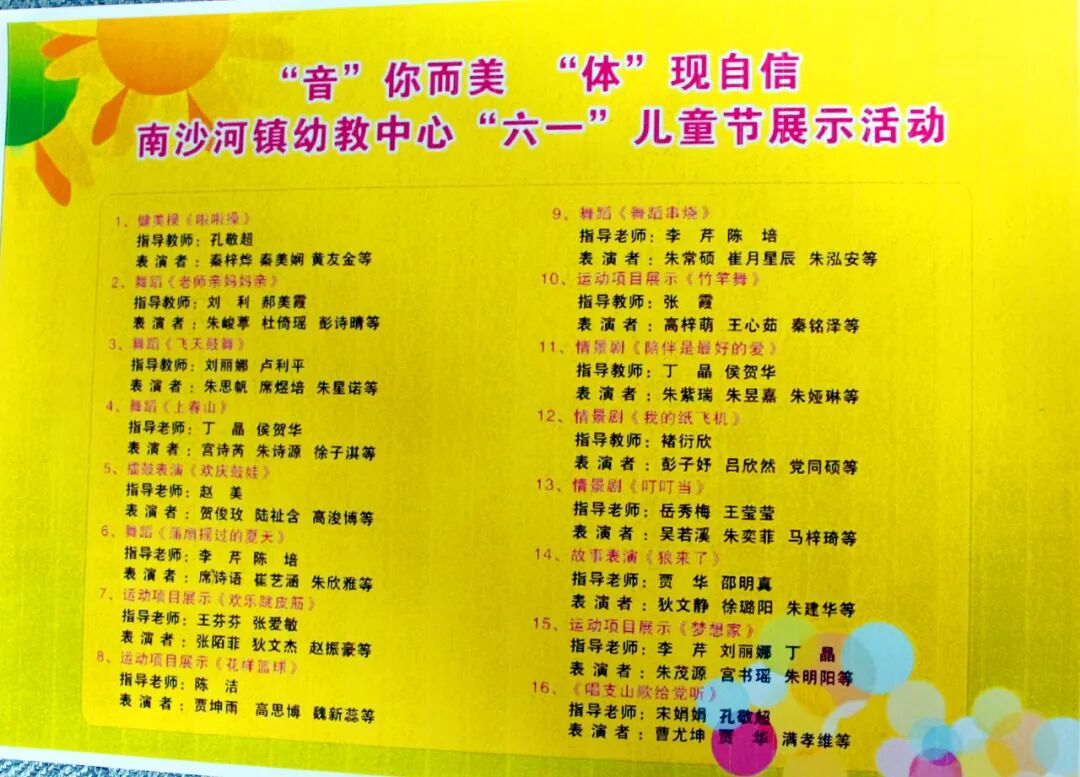 演出在健美操《啦啦操》中拉开序幕,来自各幼儿园的小朋友们身着节日的盛装,和着欢快的乐曲尽情唱跳,动感的音乐伴着可爱、自信的形象展现出当代幼儿的风采。随后,一个个精彩纷呈的幼儿节目陆续登场,应接不暇,《老师亲妈妈亲》《飞天鼓舞》《上春山》《欢庆鼓娃》《蒲扇摇过的夏天》《欢乐跳皮筋》……小朋友们在舞台上展现他们自信而精彩的表演,赢得台下观众们的阵阵掌声。