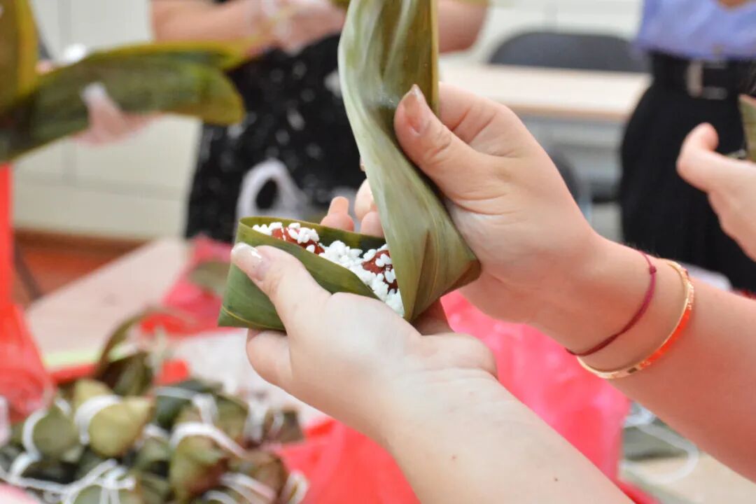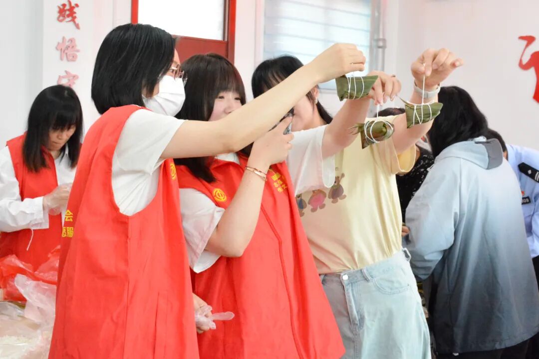 活动中邀请了培训师进行技能培训,舀糯米、折叶、盛料、压实、裹叶、扎绳,一双双灵巧的手穿梭在一片片翠绿的粽叶间,一个巴掌大小的粽子就成型了,共同感受传统习俗和动手制作带来的乐趣,浓浓的节日气氛拉近了全体干部职工的心。