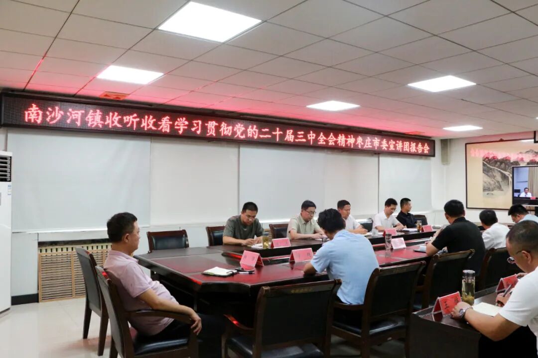 根据枣庄市委统一部署,8月13日,南沙河镇组织收听收看学习贯彻党的二十届三中全会精神枣庄市委宣讲团报告会。报告会以视频会议形式举行,由枣庄市委宣讲团成员,市发展改革委党组书记、主任,市国防动员办公室主任刘中波同志作宣讲报告。南沙河镇全体领导干部、各联建片区党委书记、部分机关干部、理论工作者、群众代表收听收看宣讲报告会。