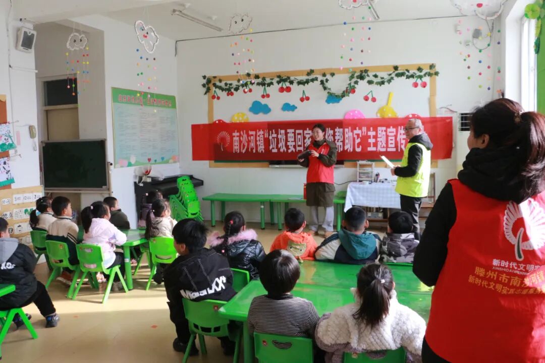 日,南沙河镇新时代文明实践所联合环卫岗到南沙河镇中心幼儿园、南沙河镇中心小学开展“垃圾要回家 请你帮助它”主题宣传活动。