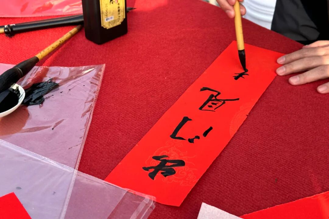 活动现场,喜庆的红纸徐徐铺开,书法老师们研墨展纸、泼墨挥毫,将新年的美好祝愿融入笔尖,一幅幅春联送到群众手中,为即将到来的春节增添了浓浓的喜庆氛围。活动现场村民们脸上洋溢着喜悦,真切感受到书法艺术的魅力,纷纷称赞并领取精美的春联。