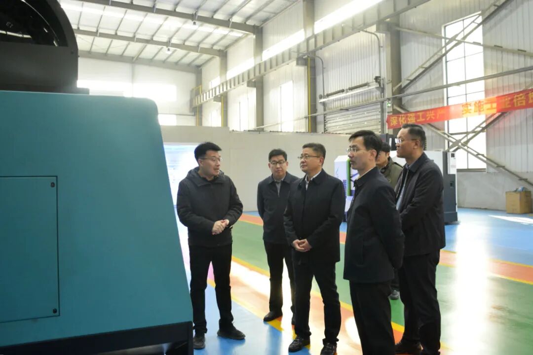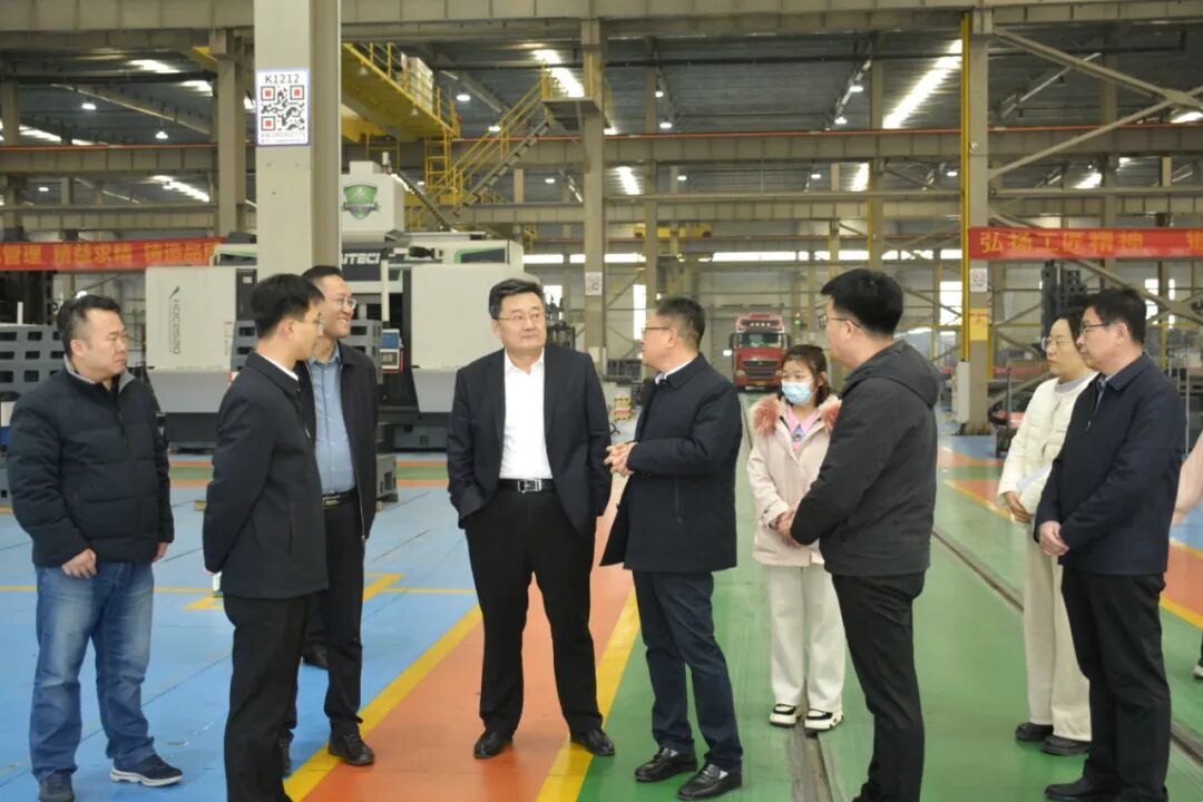 杨宝鑫一行来到海鹏高端超大型五轴数控龙门机床与数控落地镗铣复合加工中心建设项目现场,通过实地查看、听取汇报等方式,详细了解了项目创新、规划以及竣工投运等情况,并对项目建设现阶段所取得的推进成果给予了充分肯定。