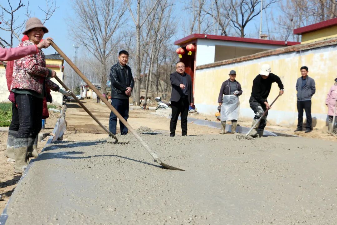 三月的春风掠过麦田,南沙河镇冯西村 “村村通” 道路施工现场却一片热火朝天,硬化已进入最后阶段,混凝土搅拌车有序作业,拉线、铺平、抹灰,施工人员协同完成最后的攻坚。冯庄片区新村党委书记徐刚,村干部朱绍伟早早地来到现场,在督促修路进度的同时确保质量和施工安全。