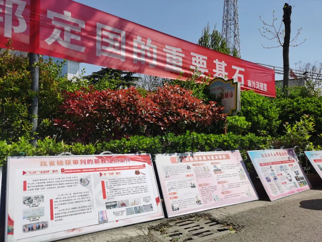 为进一步提高群众认识和抵制邪教的意识与能力。4月15日,南沙河镇平安法治办、新时代文明实践所、派出所、司法所、法庭、科协、妇联、团委等部门联合开展反邪教警示教育宣传活动。
