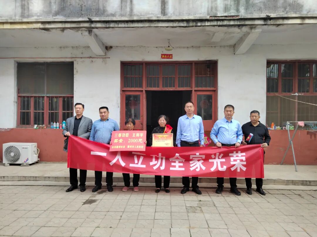 为进一步弘扬拥军优属优良传统,体现党和政府的关怀,4月17日,滕州市退役军人服务中心副科级领导干部孟凡哲,双拥办常务副主任陈来鲲等一行来到南沙河镇后辛章村,为其荣立三等功的现役军人王邦宇家属送去获奖喜报和慰问金,南沙河镇党委委员、武装部长、宣传委员陈涛,相关部门、新村人员参加活动。