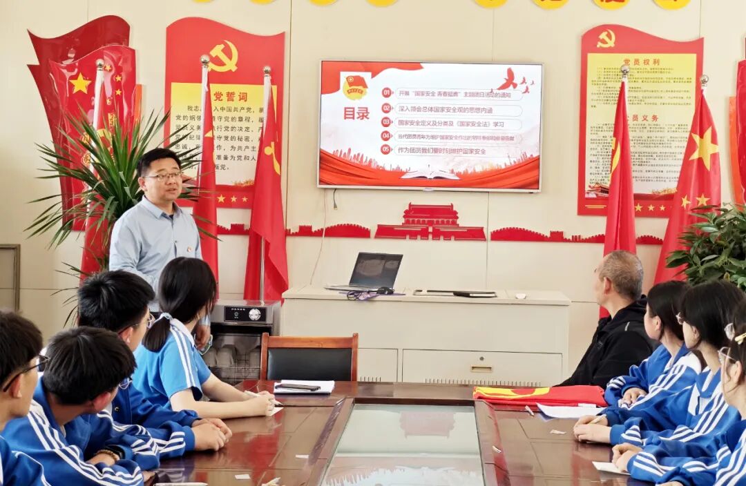 活动在理论学习中拉开帷幕。南沙河中学二楼会议室里,全体团员齐声高唱团歌,激昂的歌声展现出青年蓬勃向上的精神风貌。镇教育团委书记进行主题宣讲,从国家安全的多维度内涵切入,结合当下国际形势与实际案例,深入浅出地阐述总体国家安全观,让团员们深刻理解国家安全对国家发展和个人生活的重要意义。