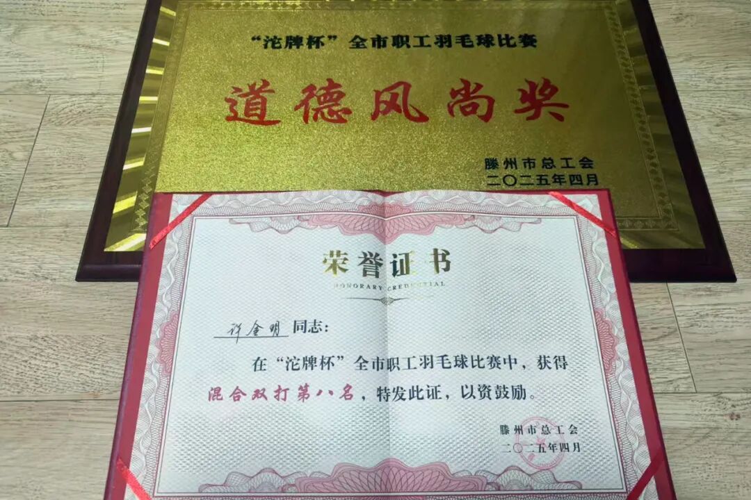4月25日,滕州市“沱牌杯”全市职工羽毛球比赛在市工人文化宫落下帷幕,来自全市各工作岗位的近300名职工共同切磋技艺、交流经验,南沙河镇总工会积极组织机关及企业7名职工参加。赛场上,他们身姿矫健,羽拍飞舞,展现出高超的球技和顽强的斗志,经过激烈角逐,最终,南沙河镇总工会代表队取得团体道德风尚奖及混合双打第八名的优异成绩。