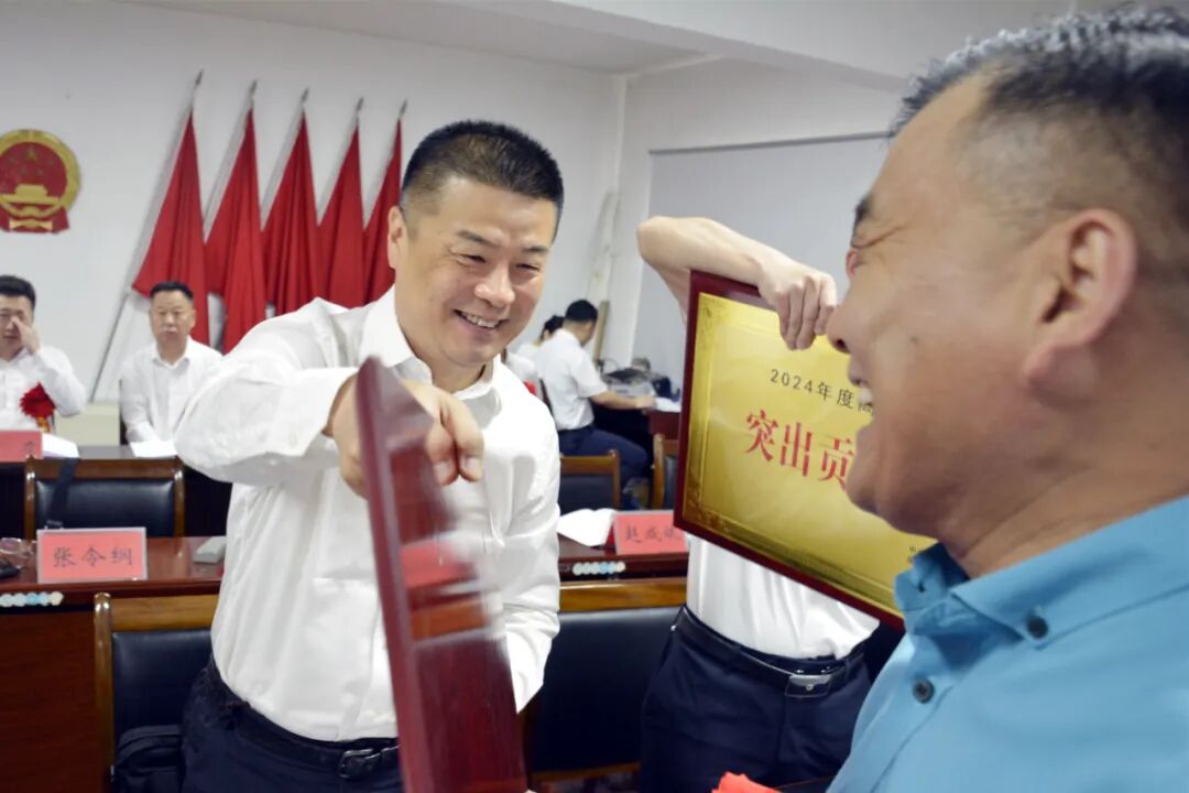 会上,党委副书记生加君宣读了《关于表彰2024年度表现突出集体和个人的决定》;2024年度高质量发展突出贡献企业代表,优秀企业代表,高质量发展“先进片区”,“综合考核先进村”代表,高质量发展先进单位和服务南沙河发展先进单位代表,担当作为好干部代表等依次上台领奖;山东海鲲数控设备有限公司总经理丁行阔、南沙河联建片区党委书记谢官胜、统计岗主管陈嘉永、北古石村党支部书记王茂生等同志上台作了发言。