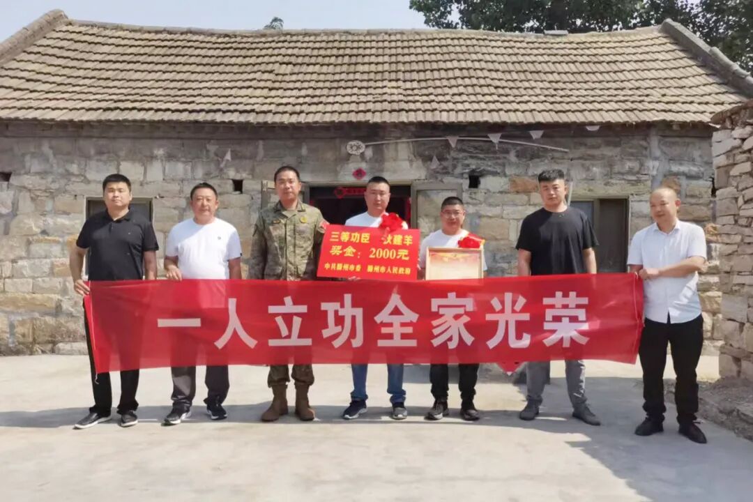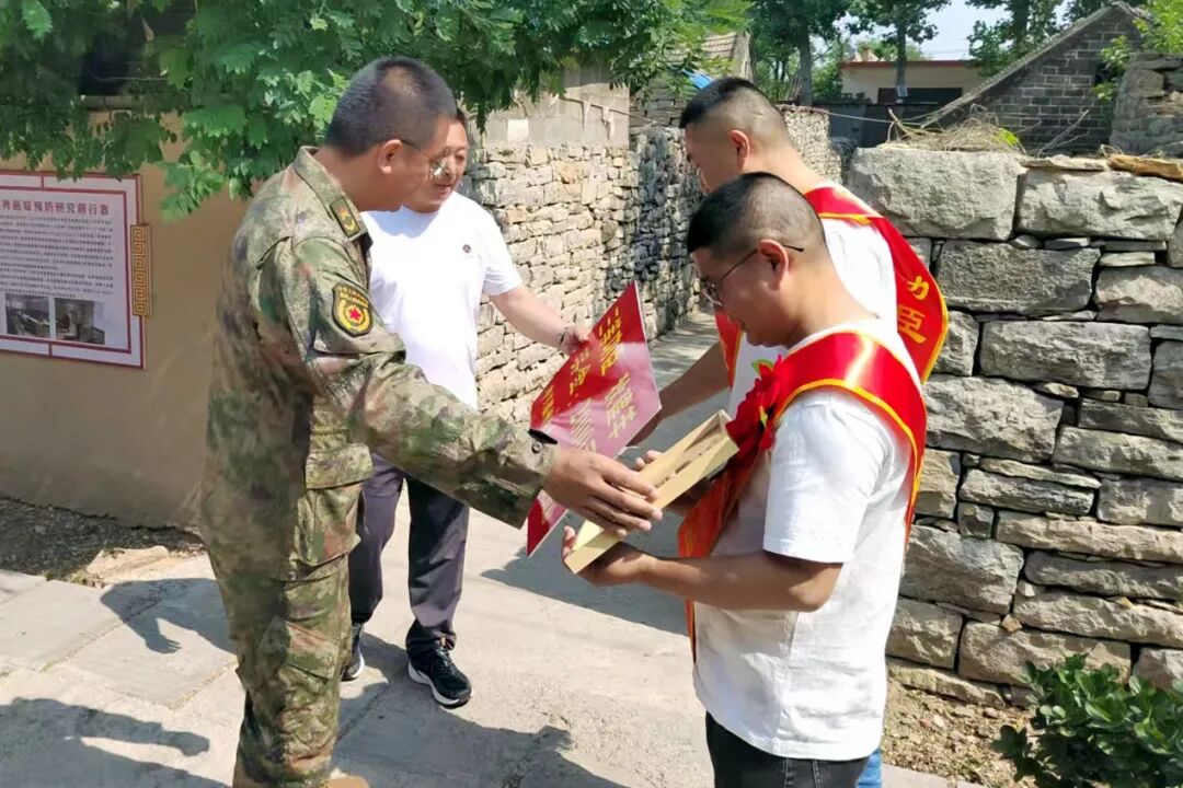 为弘扬拥军优属光荣传统,营造全社会尊崇军人的良好氛围,5月28日,南沙河镇为荣立三等功现役军人家属送喜报。南沙河镇党委委员、武装部长、宣传委员陈涛,相关工作岗、新村负责人参加活动。