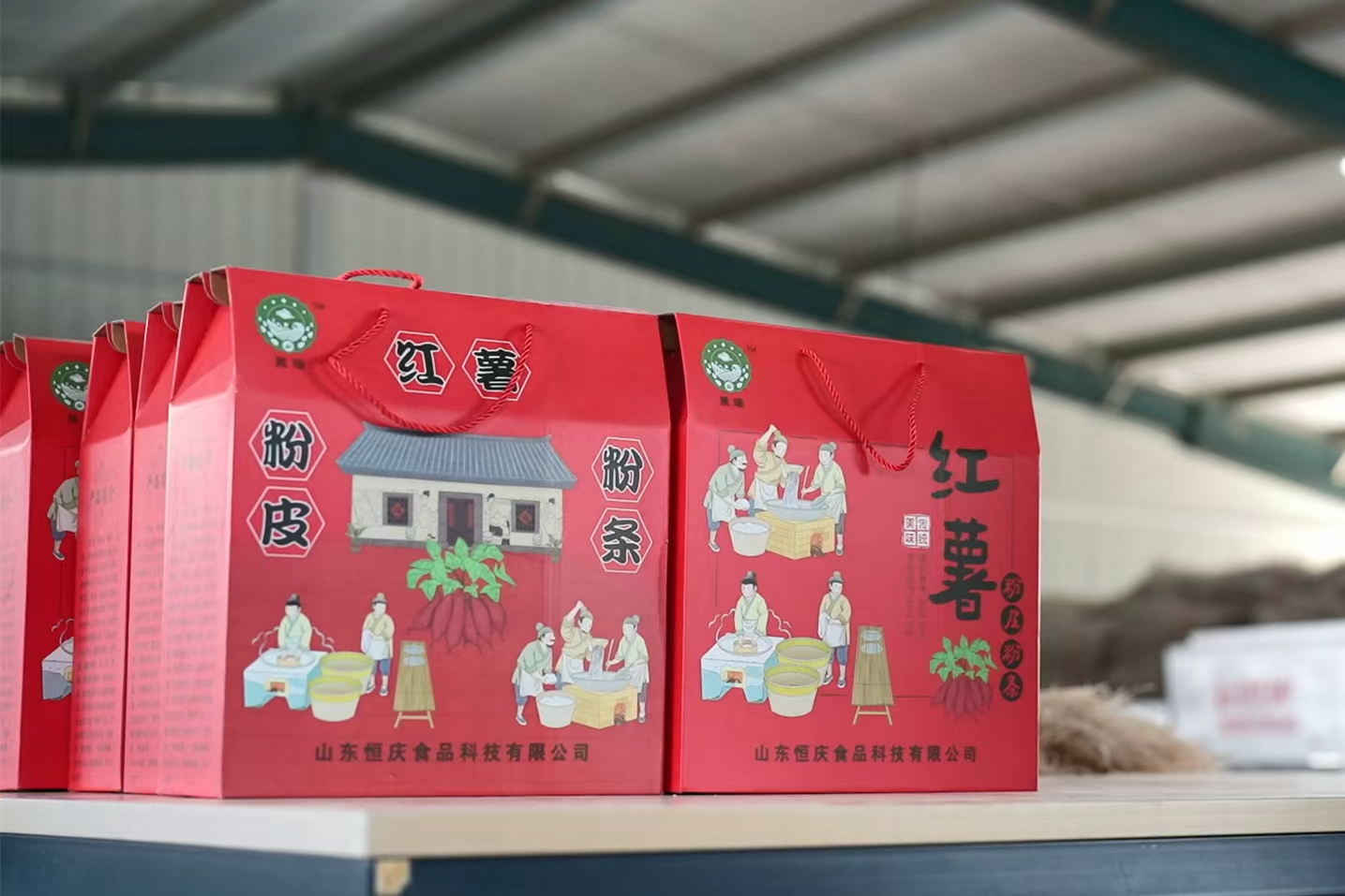 山东恒庆食品科技有限公司生产实力雄厚,标准车间,生物质晾晒场、低温冷库,形成全链条硬件支撑。生产采用“双轨模式”自动化流水线保障量产,手工生产线坚守古法,另有体验式工坊供消费者感受非遗技艺。产品兼具传承与创新,以优质红薯粉为原料,沿用上徐粉皮十余道传统工序,同时研发即食凉粉、火锅宽粉等速食产品。2025年5月获评第一批“滕州老字号”。市场与社会责任并重,搭建电商直播间、参与高端展会拓渠道,通过联农带农机制带动村民就业,为上徐村集体增收,是乡村共富与非遗传承的典范。