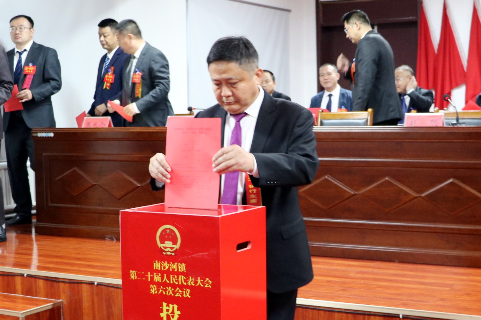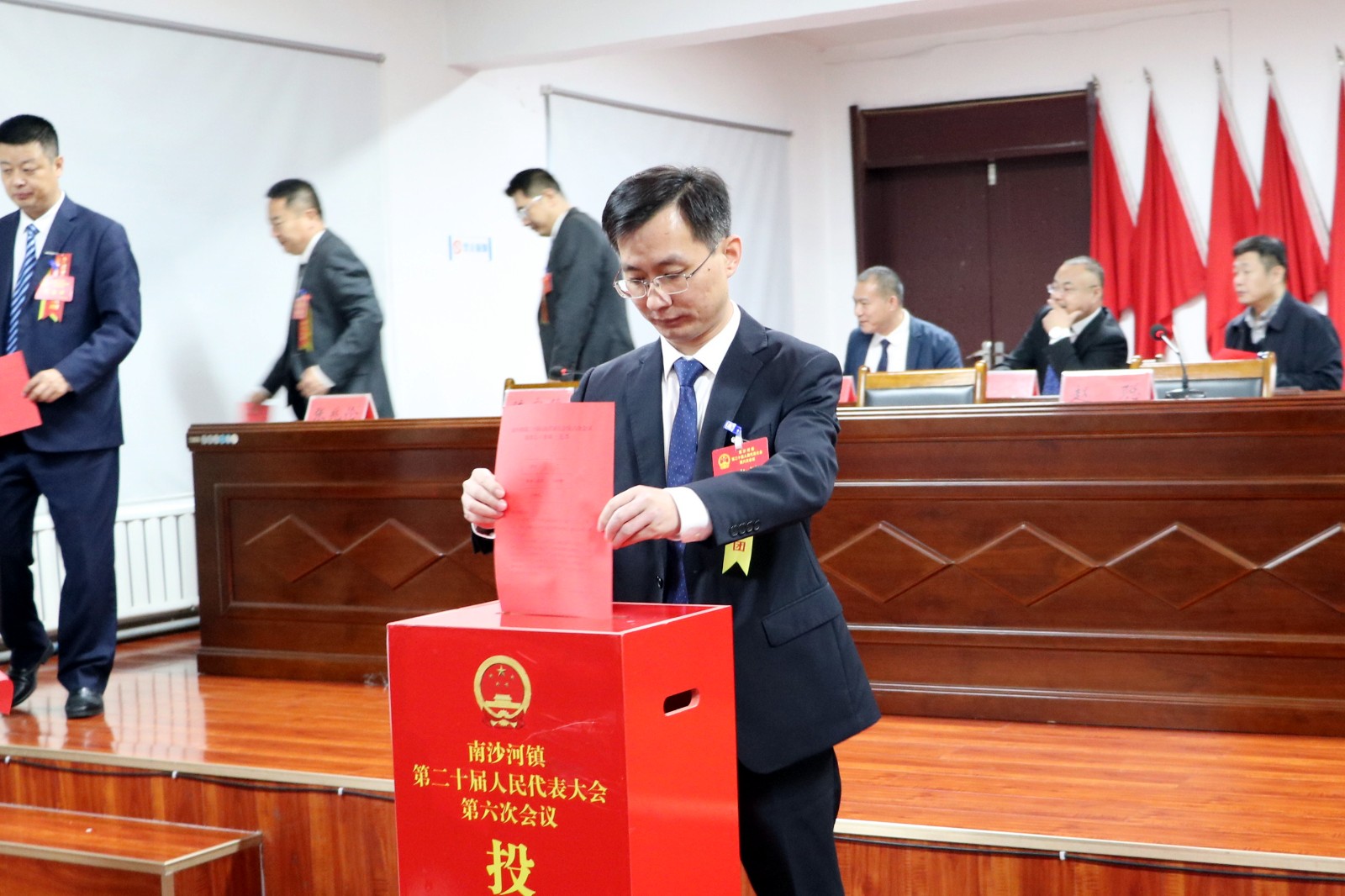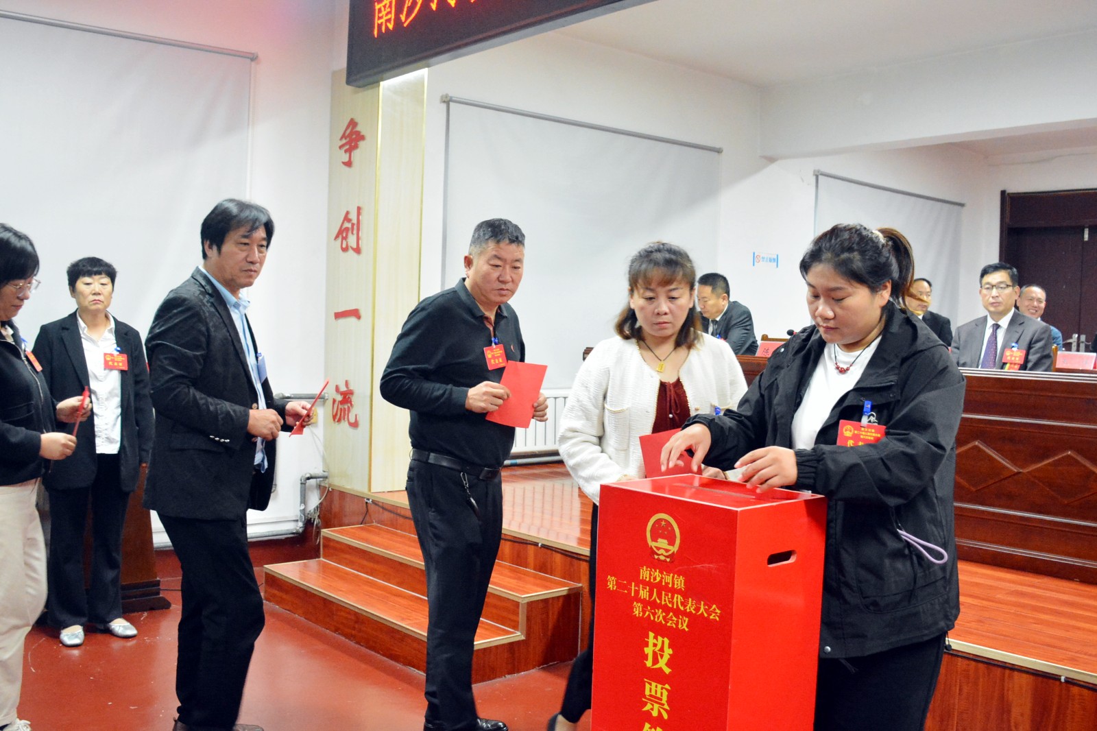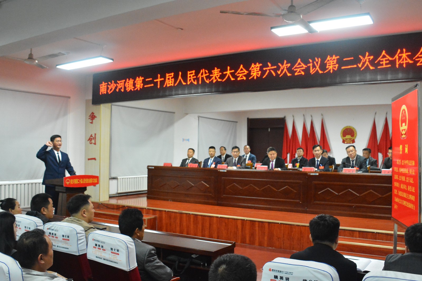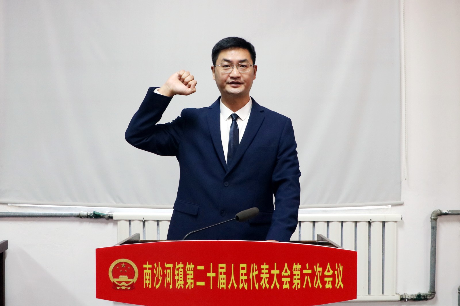 会议在庄严的国歌声中拉开帷幕。与会代表通过大会选举办法(草案),总监票人、监票人名单;韩邦朝当选为南沙河镇人民政府副镇长(挂职)并在全体与会代表的见证下向宪法庄严宣誓。