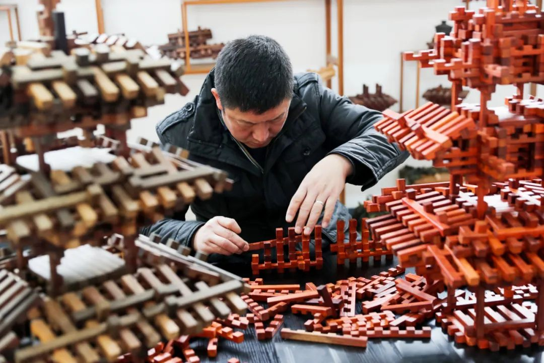 巧林榫卯积木非遗传承人郝立岩,将中国传统榫卯结构创新转化为标准模块化益智玩教具,面向亲子家庭、学校及传统文化爱好者推出这一创新产品。该项目不仅趣味盎然,还能让参与者在玩乐中深入领略中国传统榫卯文化的魅力,有效提升动手能力和空间思维能力。其产品拥有17项国家专利,荣获中国玩具协会“2021年创新趋势产品第一名”称号,并被中国科学院评为大学双创项目分项赛三等奖。此外,该项目入选2020中国文创新品牌榜100强,并摘得最具人气新品牌奖;产品《东方冠》在2022年山东省首届“振兴传统工艺·鲁班杯”大赛中荣获文化创意类金奖,并在2023年中国旅游商品大赛中斩获铜奖。研发团队更被国家文物局评为第二届“薪火相传”杰出贡献团队。2025年,在枣庄市总工会开展的第三届“枣庄手造工匠”培育工作中成功入选第三届“枣庄手造工匠”。