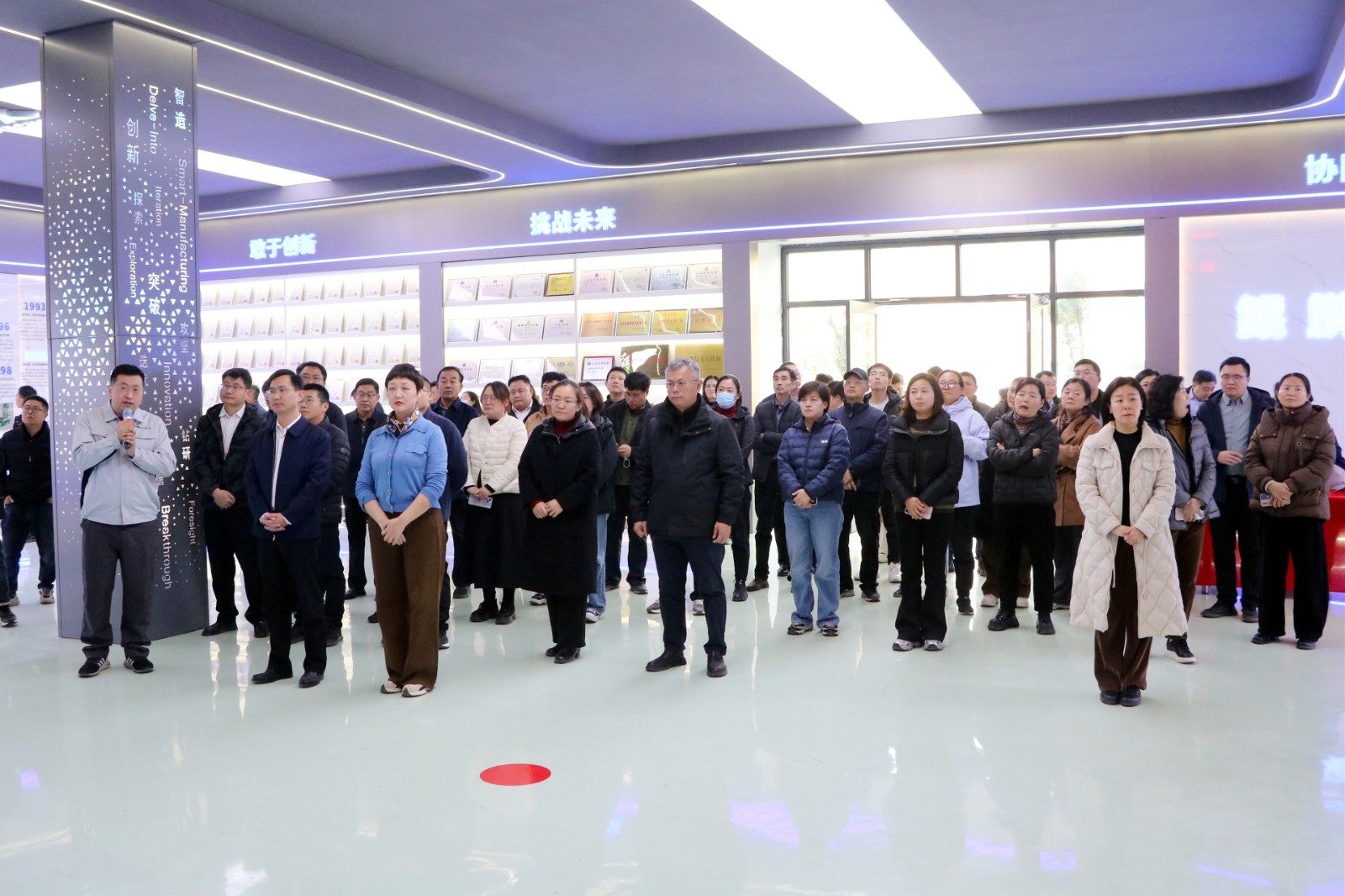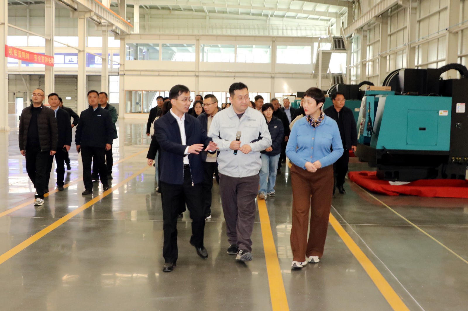 培训班一行到海鹏数控与南鲜机工合作项目现场进行现场观摩,听取了项目的进展情况、技术创新点以及未来的发展规划等情况,并就项目的市场前景、技术优势以及对当地产业升级的带动作用等进行了深入交流。