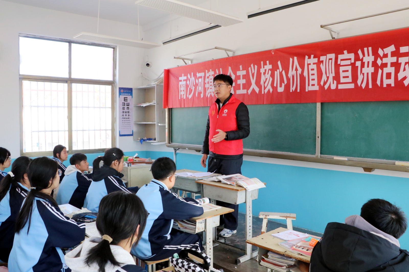 为积极培育和践行社会主义核心价值观,12月3日,南沙河镇新时代文明实践所联合退役军人事务岗走进南沙河中学开展社会主义核心价值观宣讲进校园活动。引导青少年塑造高尚品德,树立正确的世界观、人生观、价值观。