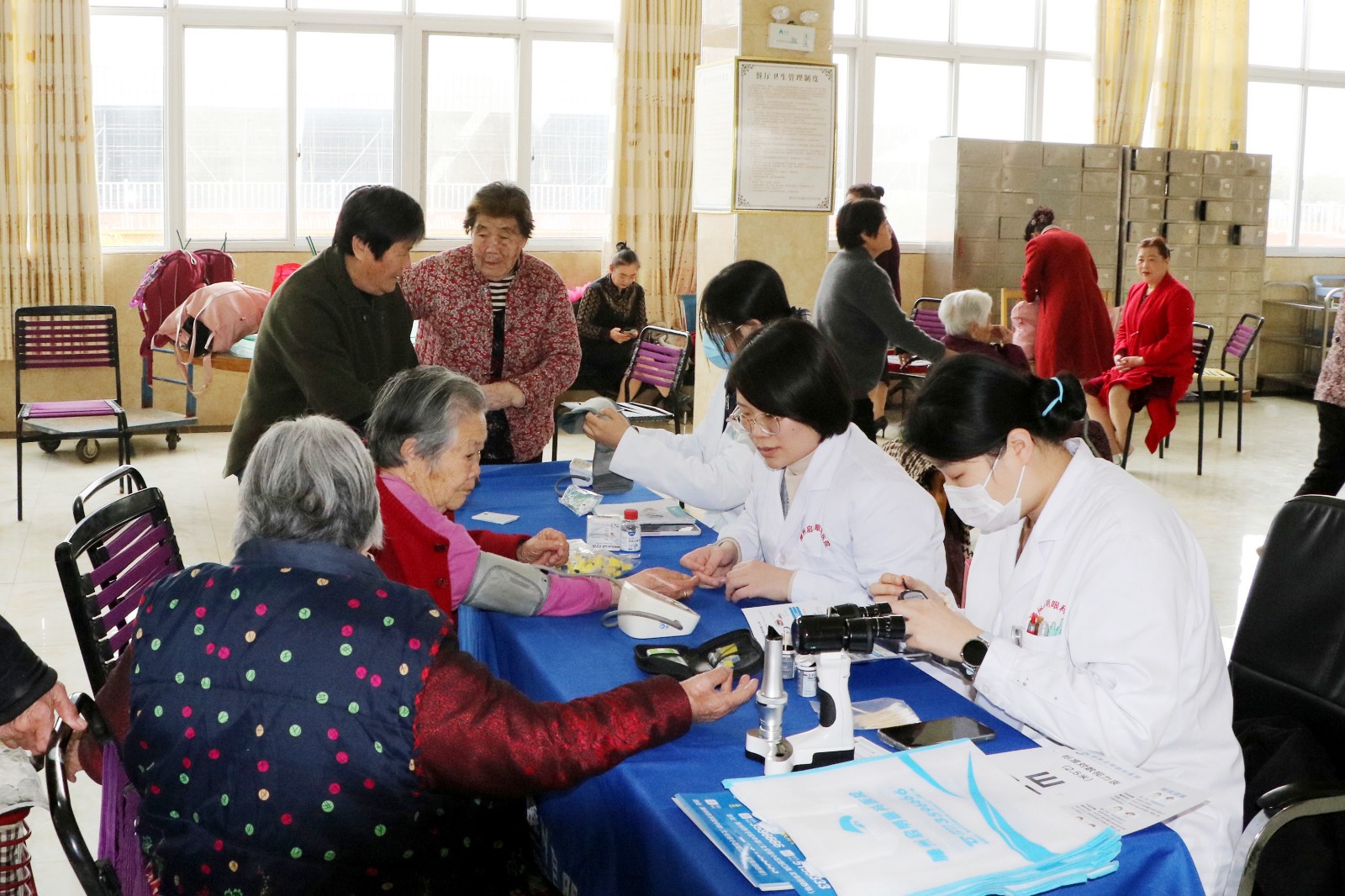 医疗省心:基本医疗服务提质。镇卫生院门诊实现即时报销“一站式”服务,设立“红马甲”服务队,新增门诊3名导医,充实壮大非医疗服务队伍和志愿者队伍,提供导医全天全流程服务,做到“进院有人帮、检查有人陪、回家有人访”。开展中医义诊、健康讲座、中医药文化进村居、村卫生室三年提升等行动,创建样板卫生室2所、中医阁卫生室5所,仓沟眼科医院免费为182名患者做白内障手术,65岁及以上老年人健康查体完成率逐年提高。