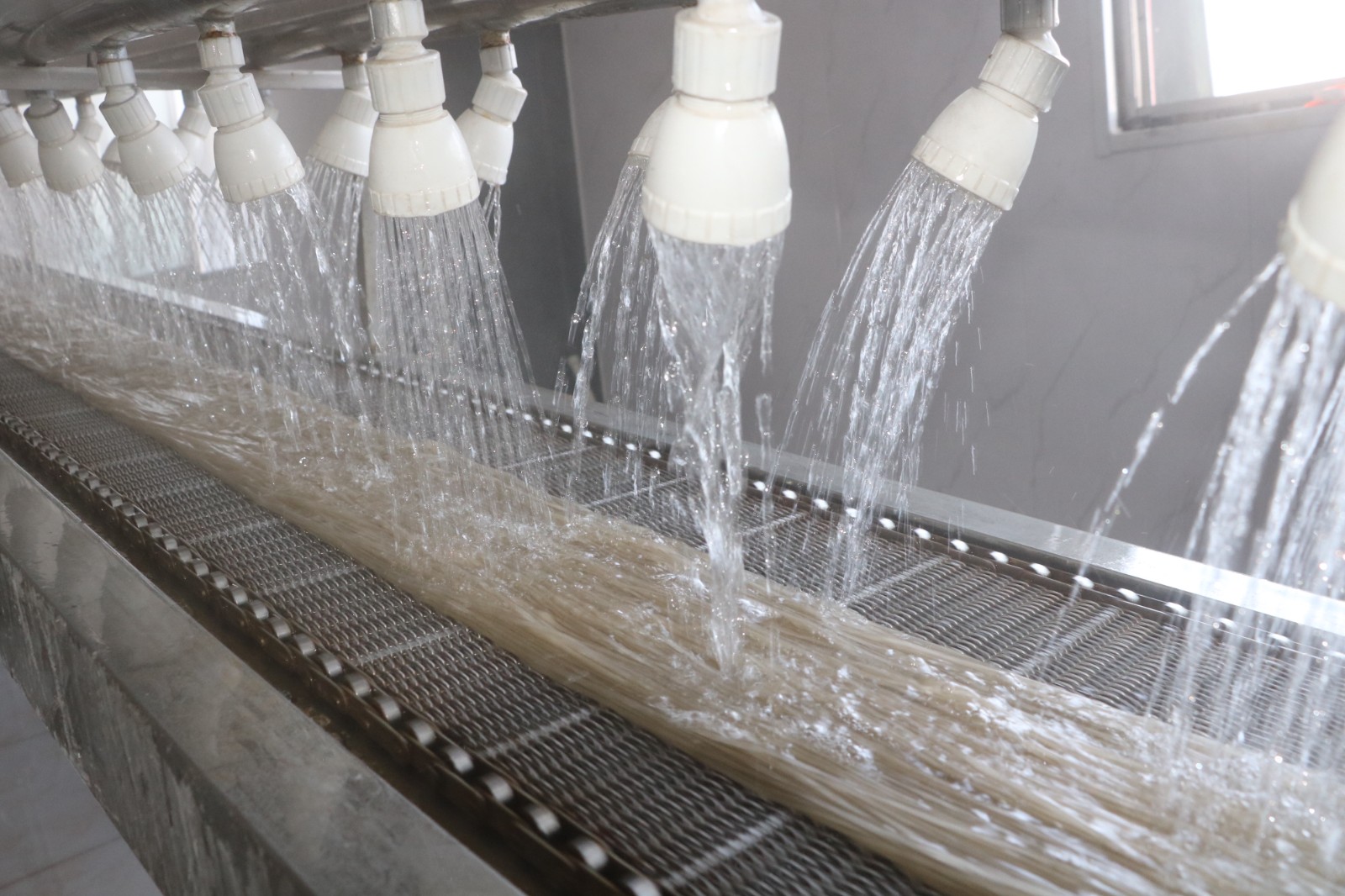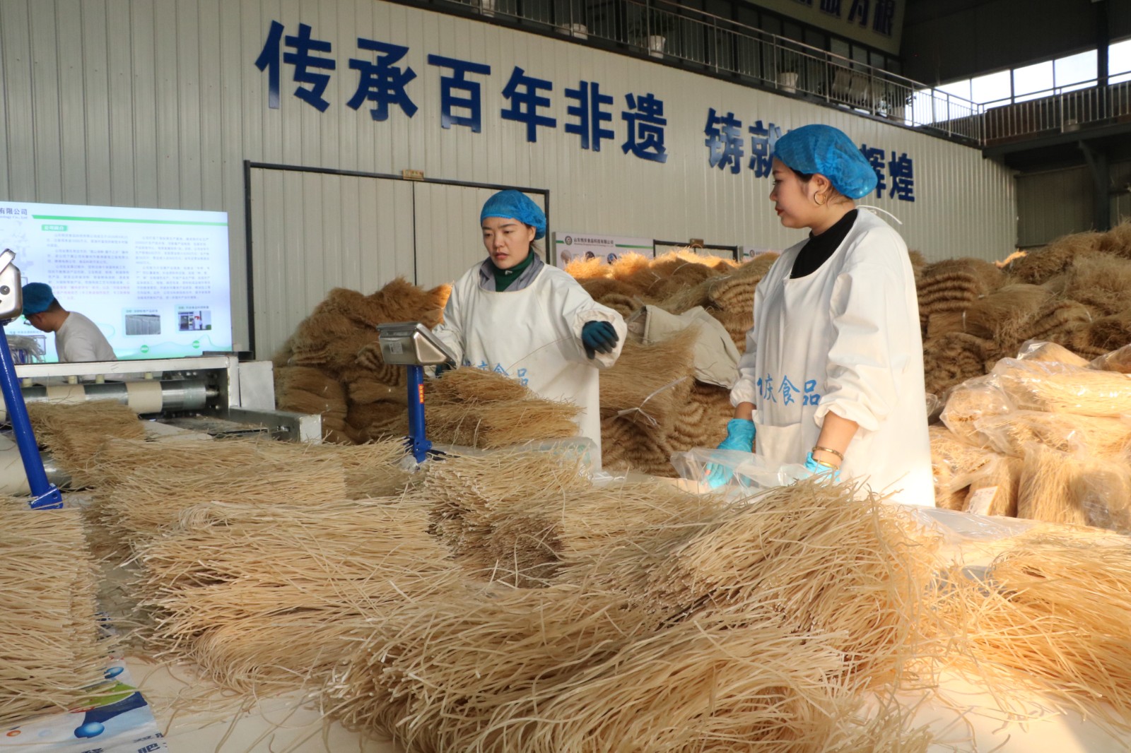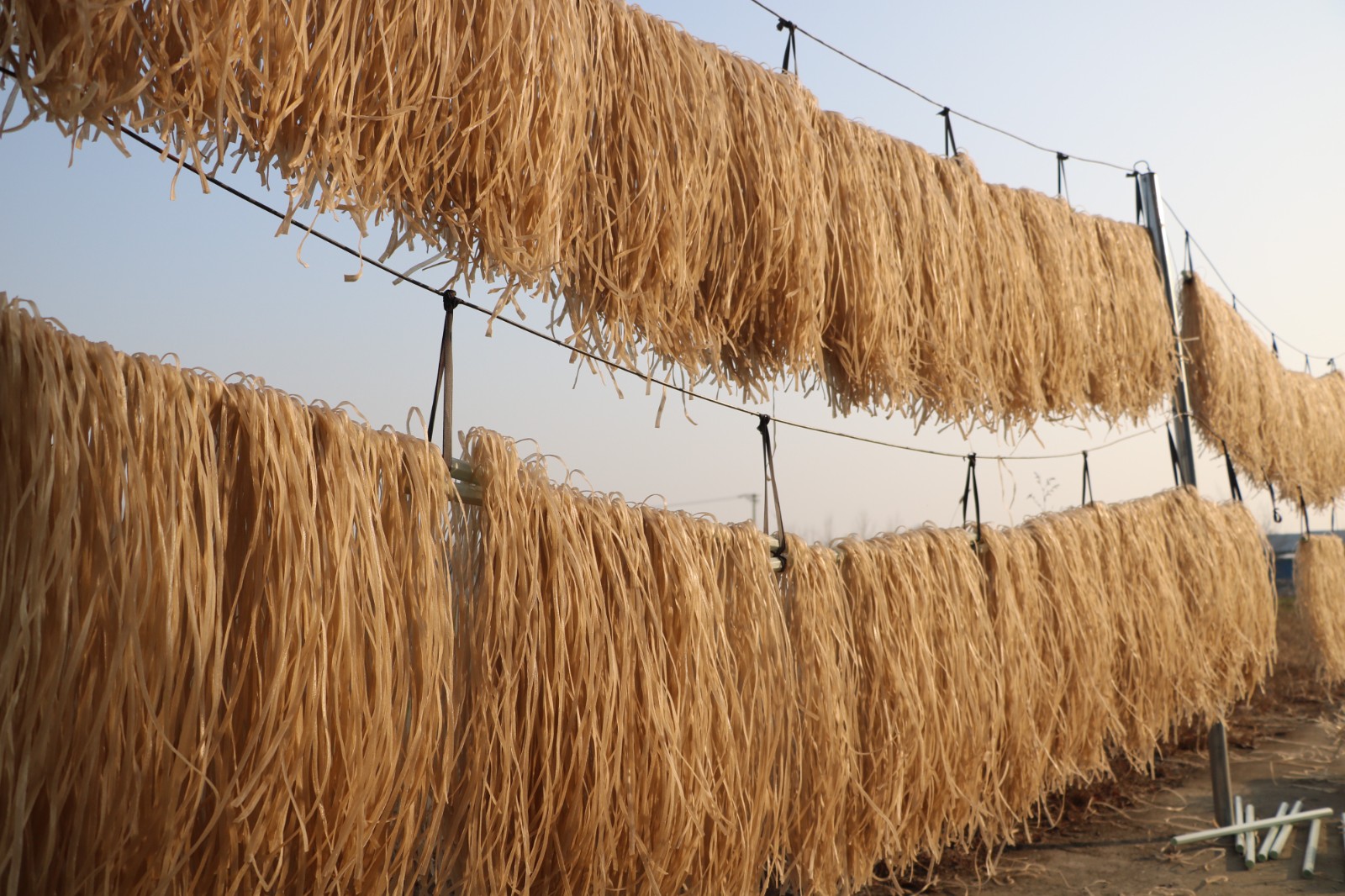 走进企业生产车间,十余道传统工艺的传承痕迹随处可见。从红薯筛选、清洗、研磨,到淀粉沉淀、漏丝、晾晒,每一个环节都坚守古法精髓,确保产品口感细腻滑爽、色泽晶莹剔透。“传统工艺是我们的根,不能丢。”上徐村党支部书记徐传君介绍道。在此基础上,企业并未固步自封,而是积极推进现代化升级,打造标准生产车间,新建现代化生产流水线、纯手工粉皮生产线,配套建设生物质晾晒场、冷库及专业包装车间,形成了从原料加工到成品仓储的全链条硬件支撑。