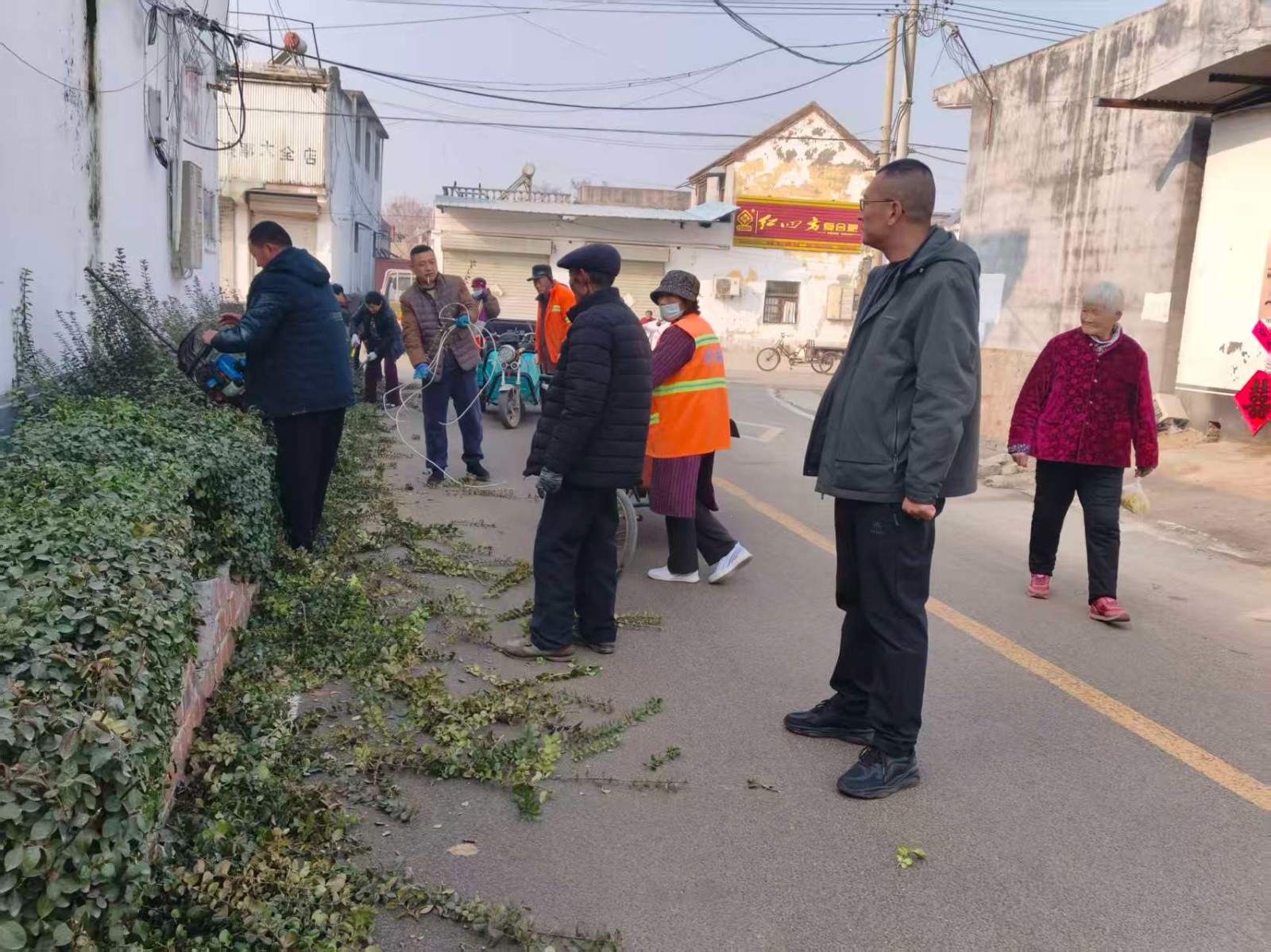 此次整治行动聚焦群众反映强烈的突出问题,统筹镇村两级力量,重点对辖区主干道沿线、村庄街巷、房前屋后、沟渠坑塘等关键区域进行集中清理。行动中,村干部、网格员、环卫工人与村民群众协同配合,手持扫帚、铁锹、垃圾夹等工具,对生活垃圾、建筑垃圾、杂草杂物开展“拉网式”清理;同时对占道经营、乱堆乱放、乱贴乱画等乱象进行专项整治,着力消除卫生死角。此外,工作人员还结合整治现场,向村民宣传人居环境整治的政策要求与长远意义,引导群众养成“人人参与、共建共享”的良好习惯,推动形成整治工作常态化氛围。