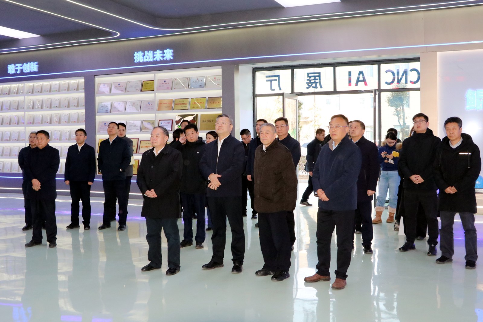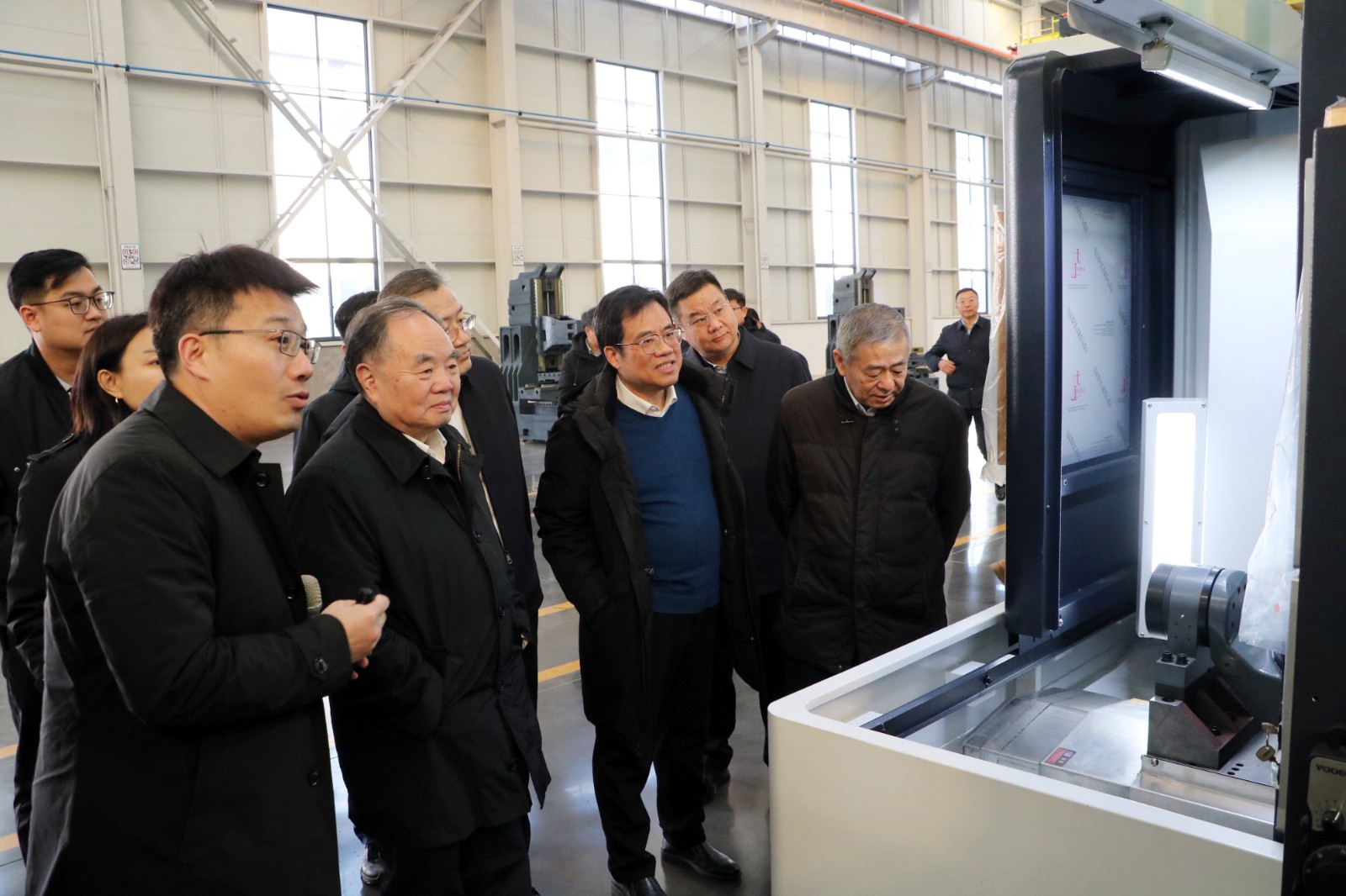 1月8日,中国工程院院士、国家制造强国建设战略咨询委员会主任、山东省制造强省建设院士专家咨询委员会主任周济一行来南沙河镇调研机床产业发展情况。省工信厅党组成员、副厅长王茂庆,省工信厅一级主任科员王海波;枣庄市政府党组成员、副市长张龙江,市工信局党组书记、局长杜飞廉,市工信局党组成员、副局长王家贺;滕州市政府副市长马金安,市工信局党组书记、局长王慎平,市机电工业服务中心主任张雷;南沙河镇党委书记赵聪及企业负责人参加活动。