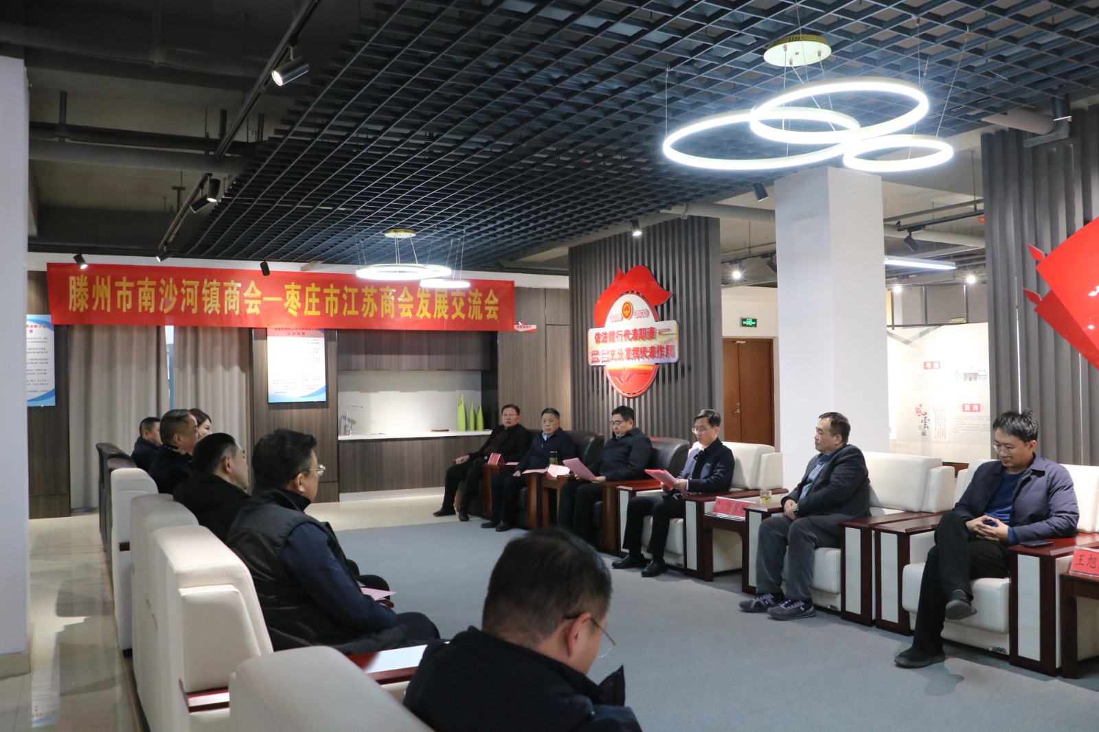 1月17日,南沙河镇召开南沙河镇商会-枣庄市江苏商会发展交流会。枣庄市江苏商会会长王中会,党支部书记王以泰,及商会副会长邱兵、李娇、王杨洋、孙如涛,会员代表马一玮莅临交流;南沙河镇党委副书记、镇长李源,人大主席、总工会主席赵守河,党委委员、副镇长王旭光,及相关工作岗负责人参加会议;南沙河镇商会会长徐夫成,副会长姜涛、崔巍、张存方等代表参加会议。会议由南沙河镇人大主席、总工会主席赵守河主持。