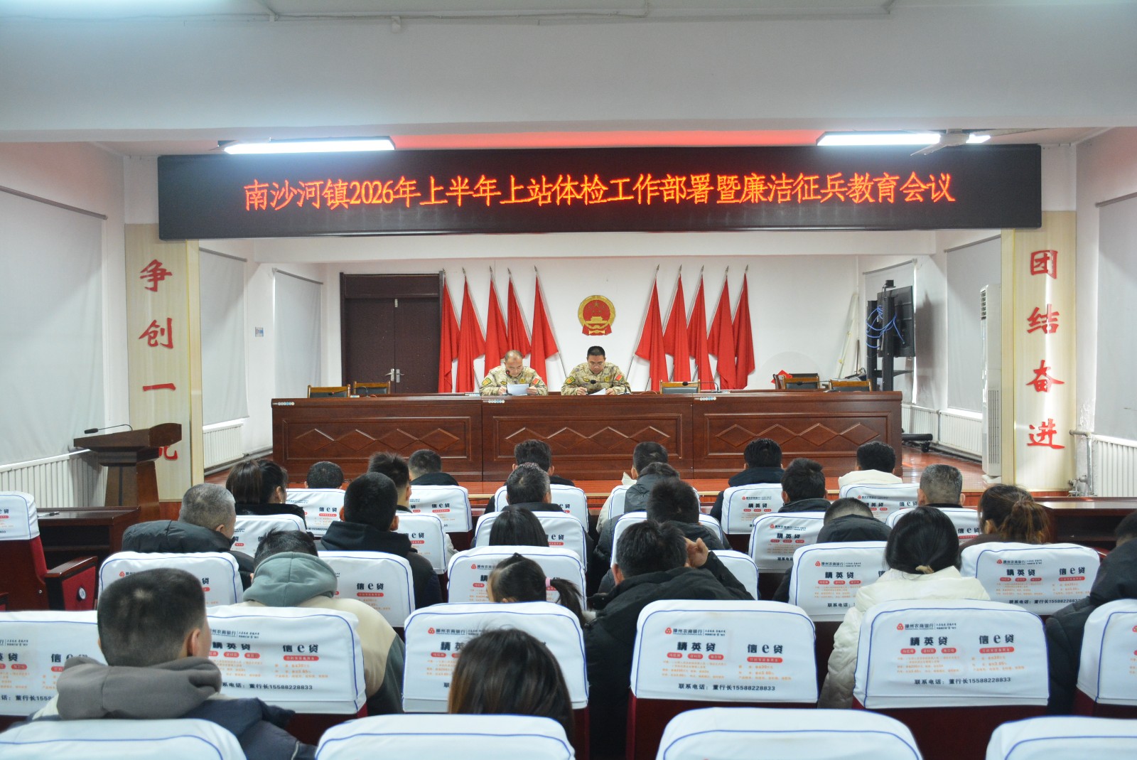 2 月 6 日,南沙河镇召开 2026 年上半年应征青年上站体检部署暨廉洁征兵教育会议,党委委员、武装部长、宣传委员陈涛主持会议,应征青年及家长参会。