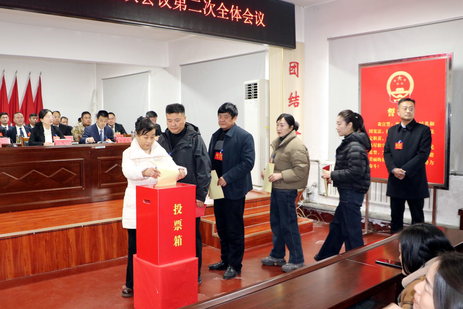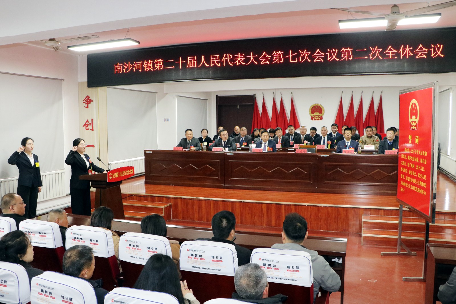 大会在庄严的国歌声中拉开序幕。听取、审议并通过了镇党委副书记、镇长候选人朱先婷同志作的《政府工作报告》;人大主席、总工会赵守河同志作的《人大主席团工作报告》;朱先婷当选为南沙河镇人民政府镇长,苏婷当选为南沙河镇人民政府副镇长;票决了惠民实事项目;通过了议案审查委员会关于议案审查情况的报告(草案)、财政预决算委员会关于财政预决算审查情况的报告(草案)。