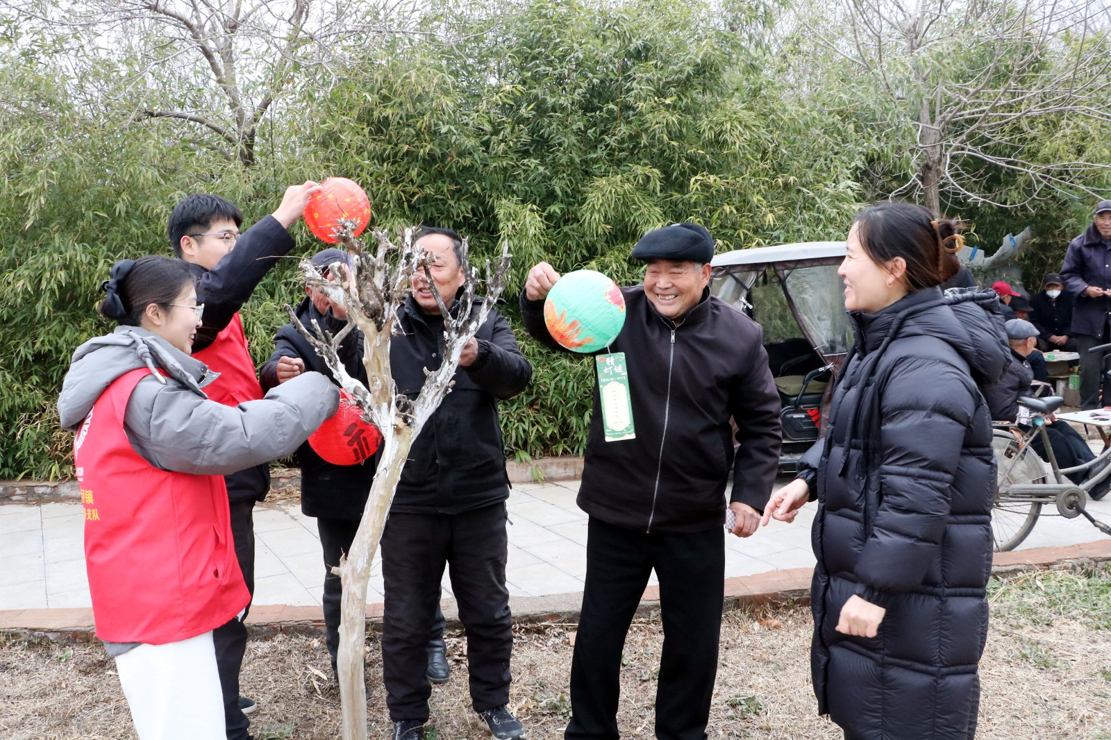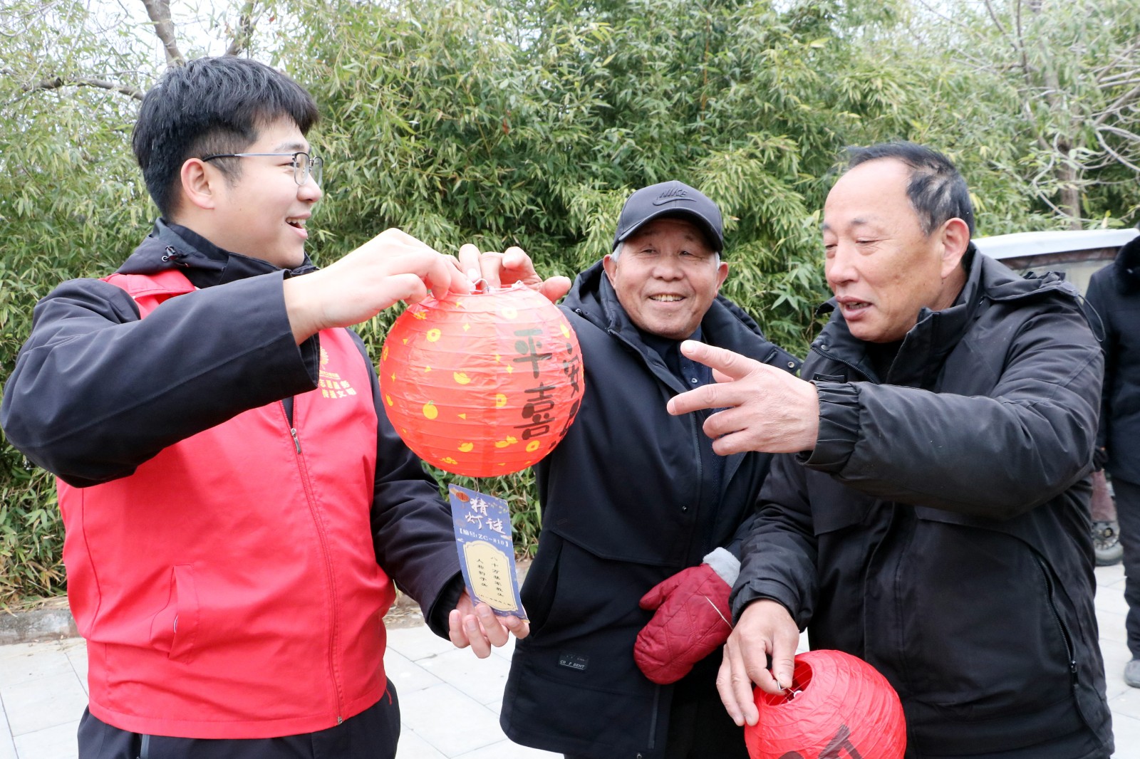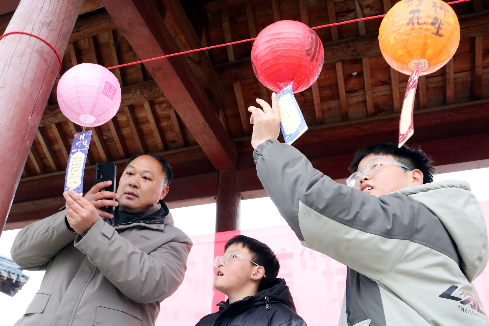 猜灯谜环节中,男女老少齐聚一堂,或驻足沉思,或小声探讨,或欢呼雀跃,现场气氛热烈而温馨。大家你一言我一语,争相破解谜题,成功猜中者可领取暖心奖品,在收获喜悦的同时,感受传统文化的魅力。