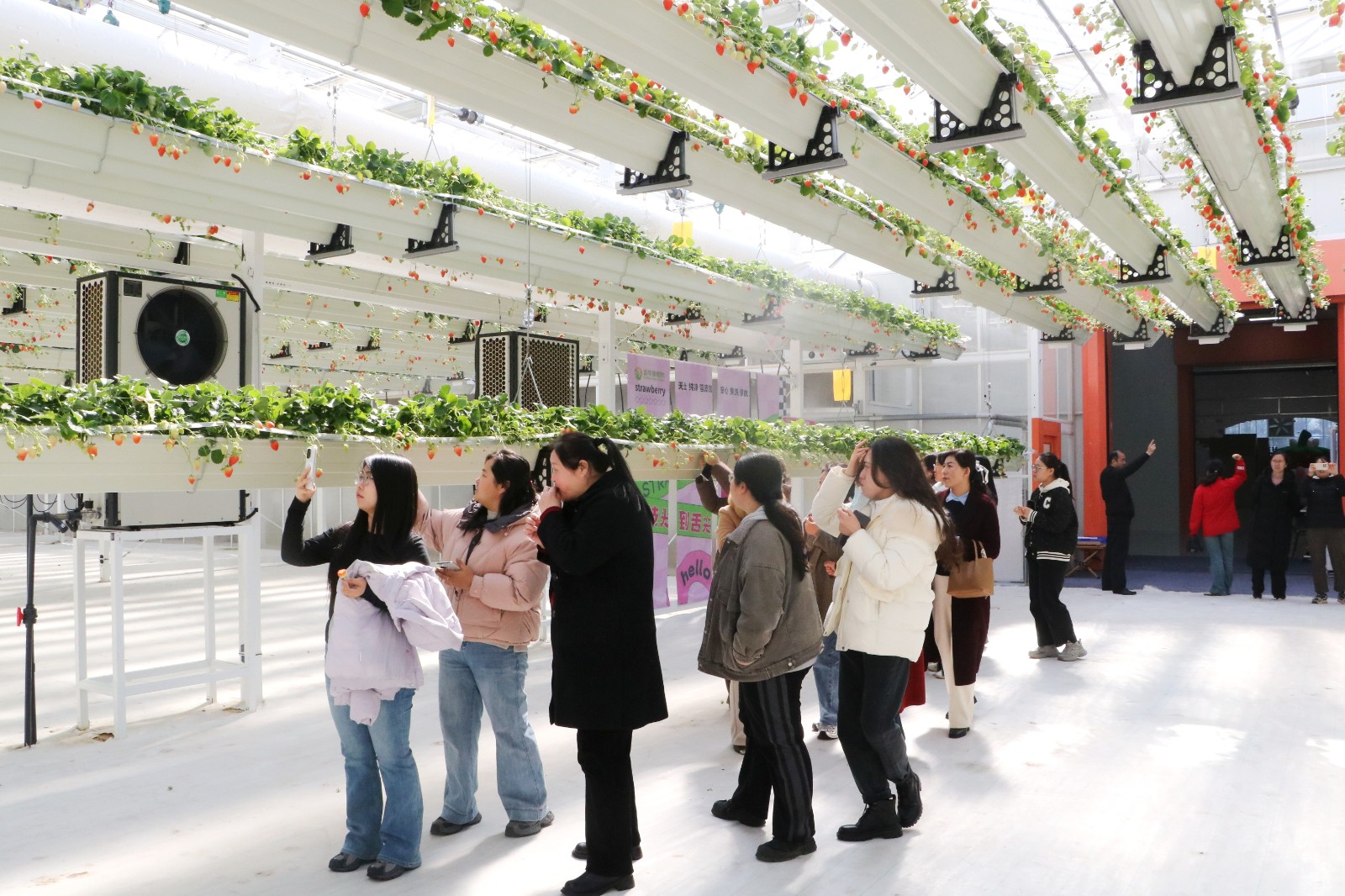 最后,参训人员前往姜屯镇信华新格林现代农业科技示范园,先后观摩了企业展厅、蝴蝶兰培育温室、草莓种植温室、组培研发中心,现场品尝空中草莓,近距离感受现代农业的科技魅力与发展成果,丰富了学习体验,也为后续探索巾帼创业新路径积累了宝贵经验。