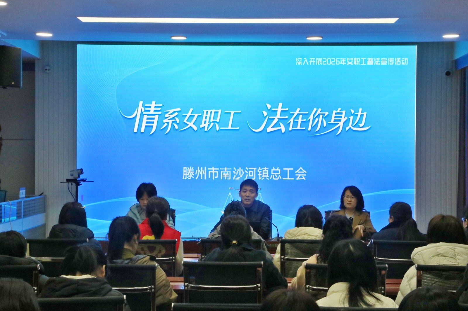 近日,南沙河镇总工会联合派出所、司法所、妇联、公共文化岗、组织人事岗开展“情系女职工 法在你身边”普法宣传专题培训,全镇机关、村、企业女职工代表及相关工作人员参加活动。