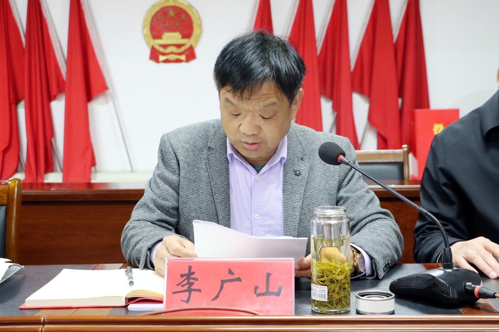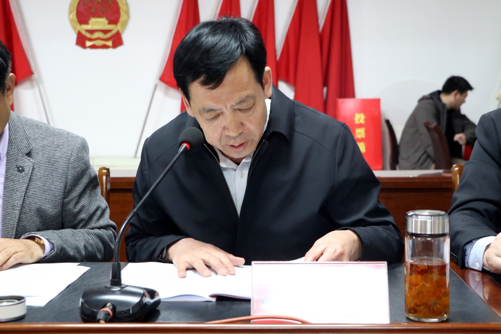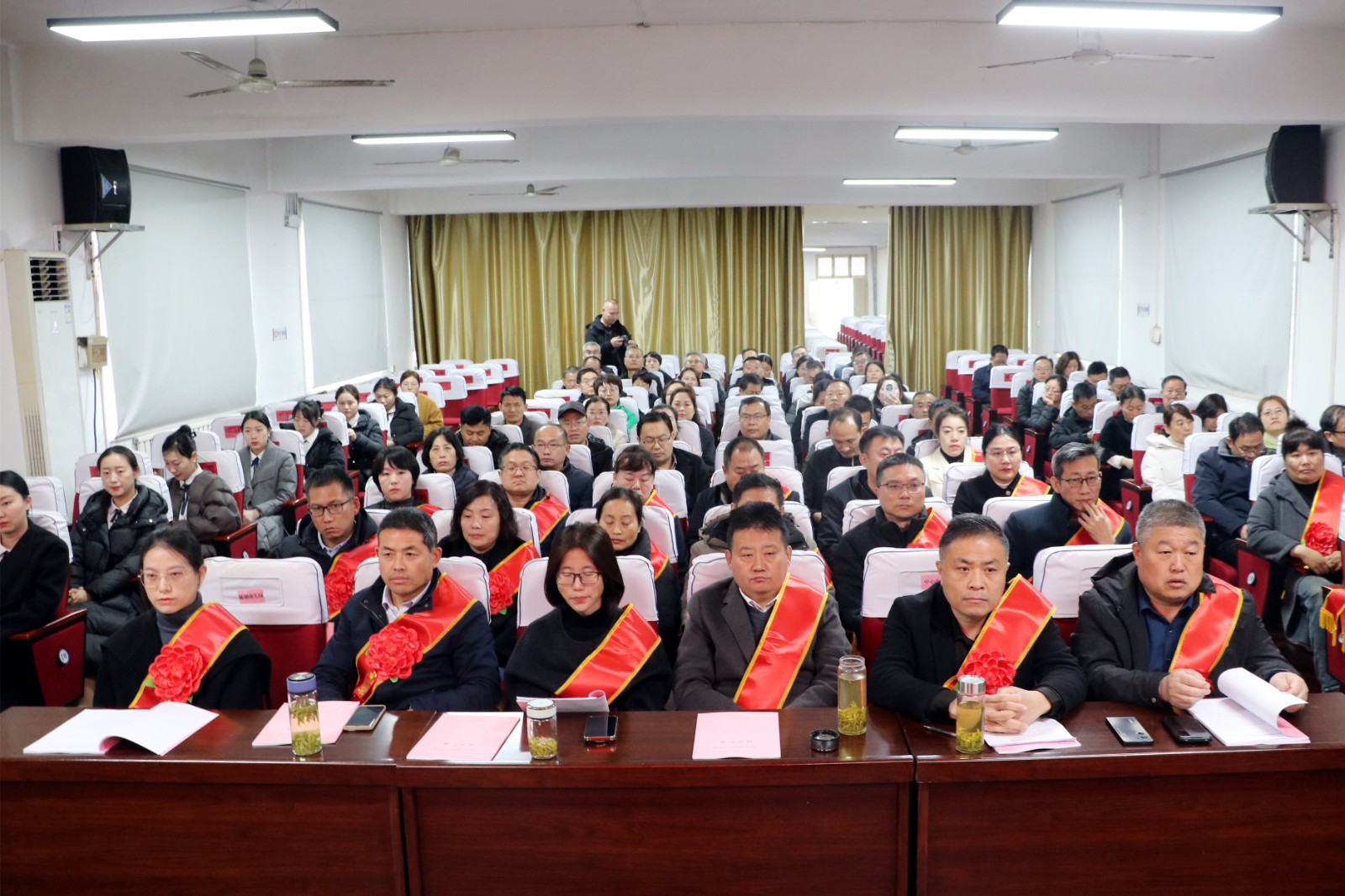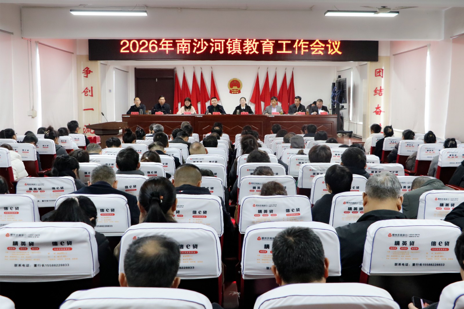 会上,学区指导员汪涛同志宣读了《表扬通报》,对过去一年在教育教学、党务工作、德育管理及班级建设等方面表现突出的先进单位与个人予以通报表扬;主席台领导为获奖先进单位和先进个人依次颁发荣誉证书;先进单位代表庄浩、先进个人代表吴强、宋娟娟先后上台作典型发言,分享了宝贵的教育教学经验与管理心得;学区指导员徐祥明传达了《南沙河镇学区2026年教育工作要点》,对全年重点工作任务进行了全面部署;镇学区党委书记、主任李广山结合全镇教育实际,作了教育工作报告,系统总结了过去一年的工作成绩,深入分析了当前面临的形势,并对 2026 年全镇教育系统的目标任务与实施路径作出明确安排。