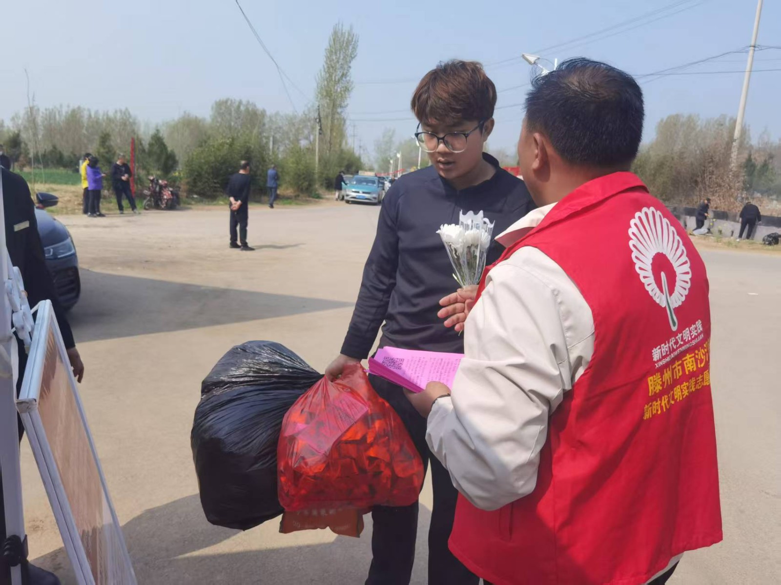 创新实践发力,丰富祭扫形式。为让文明祭扫落地生根,推出多项便民惠民举措,让群众在践行新风尚的同时,充分表达对先人的缅怀之情。在善国陵园门口设立“纸钱换鲜花”服务点,村民可将随身携带的传统祭祀用品,免费兑换白菊等素雅鲜花,以花寄情替代烟火祭祀,从源头消除火灾隐患,守护辖区生态环境,得到群众广泛响应和积极参与。