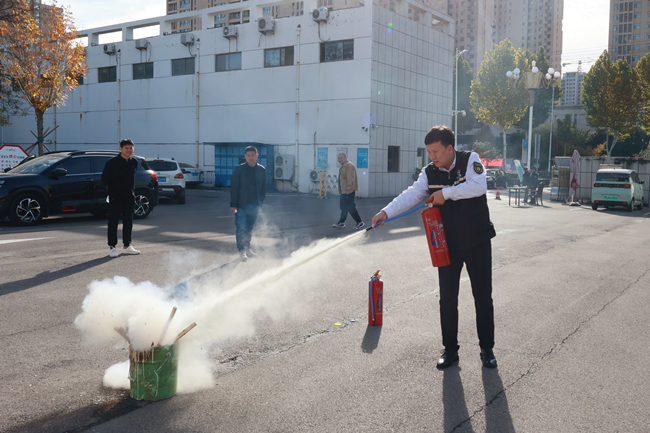 最后,现场设置起火点,模拟发生“火情”,教官通过现场示范的方式对灭火器的种类、用途、操作方法、保存时限、注意事项等进行详细讲解,并指导人员进行实际操作,正确使用灭火器对现场模拟火点进行灭火,提升了参加人员对灭火器的实操能力。