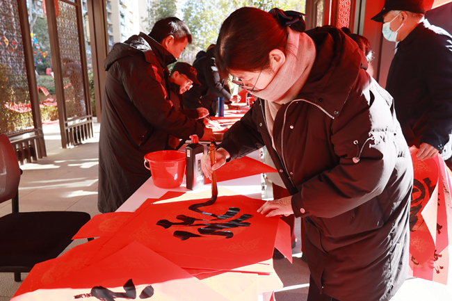 “红联贺岁千家暖,喜气洋洋万户欢。”此次活动,为群众免费书写新春祝福对联、大小福字共200余幅。不仅丰富了居民文化生活,营造欢乐祥和节日氛围,更是以文化为纽带,为居民们送上了一份别出心裁的新春贺礼,提前点燃了蛇年春节的欢庆氛围,为寒冬注入温情,助力文化传承。