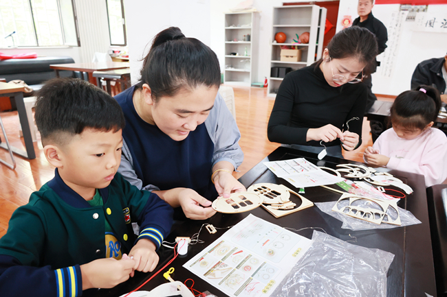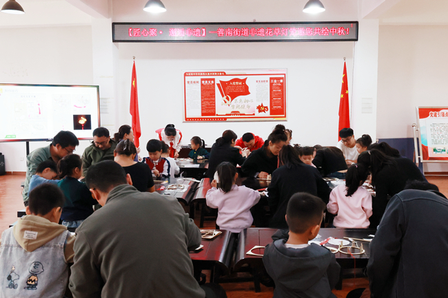 一纸花草灯笼,拎起中秋浪漫。活动现场,非遗志愿者执灯为引,现场讲解花草灯笼的非遗历史、制作技巧,大家听得专注,跃跃欲试,有的小心翼翼地摆放花草纸,让花瓣纹理与纸张底色相映成趣;有的反复调整灯架角度,确保灯笼悬挂时平稳端正;还有亲子家庭相互协作,孩子递上胶水,家长抚平纸张,欢声笑语间满是温馨。