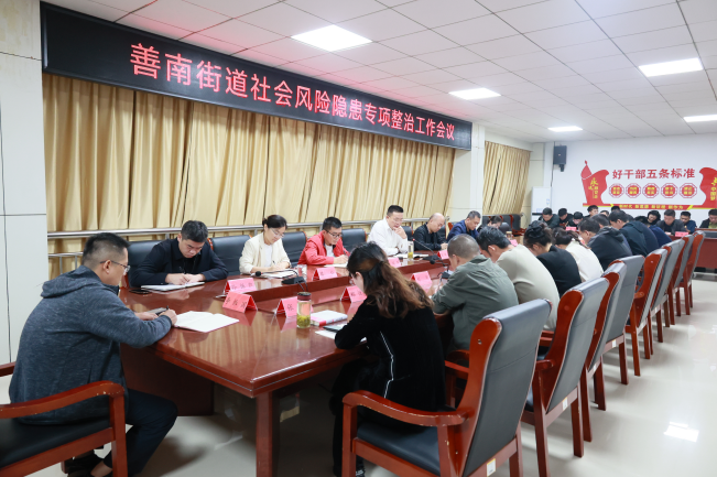 10月10日,善南街道召开社会风险隐患排查整治工作会议。街道全体领导干部、各社区(片区)书记,派出所、执法中队以及相关岗位负责同志参加会议。