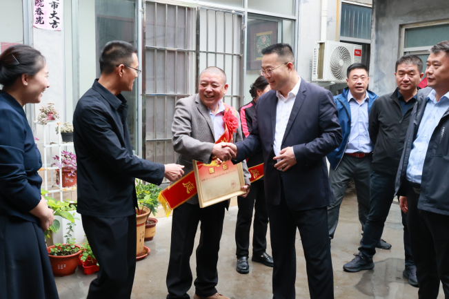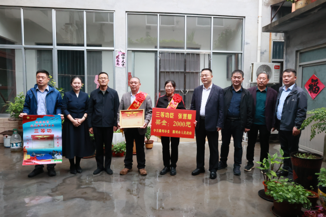 军营建功业,喜报送家门。10月15日,市退役军人事务局党组成员、副局长姜传东,双拥办公室主任陈来鲲到善南街道为三等功臣张誉耀的家属送去获奖喜报和慰问金。善南街道党工委书记庞传军,办事处副主任张晓冉以及相关工作岗参加活动。