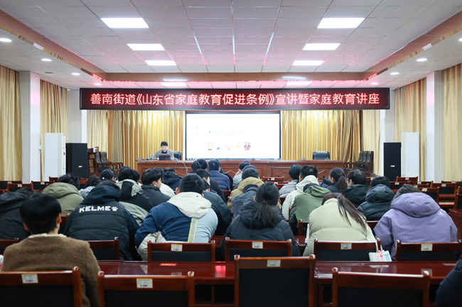 为深入贯彻落实《山东省家庭教育促进条例》精神,强化家庭的教育主体责任,近日,善南街道妇联举办《山东省家庭教育促进条例》宣讲暨家庭教育专题讲座活动。