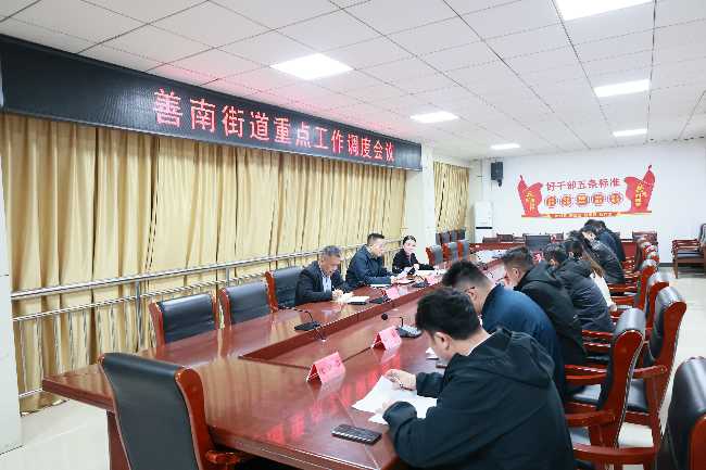 11月26日,善南街道召开重点工作调度会议。街道党工委书记庞传军,街道领导李娜、孙冰、张晓冉、张慧,各社(片)区书记以及相关工作岗参加。