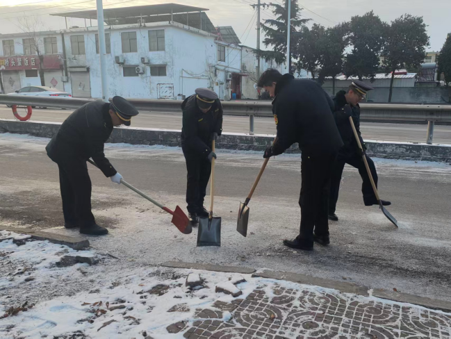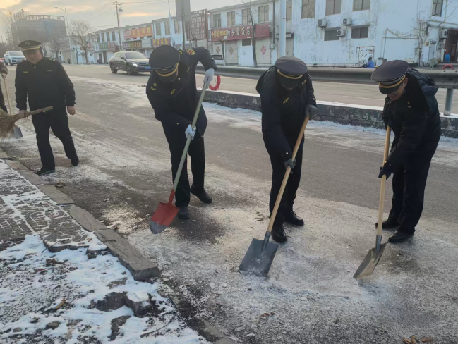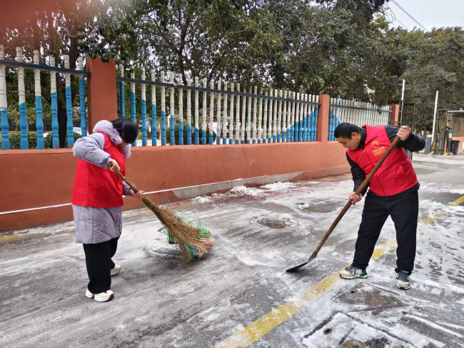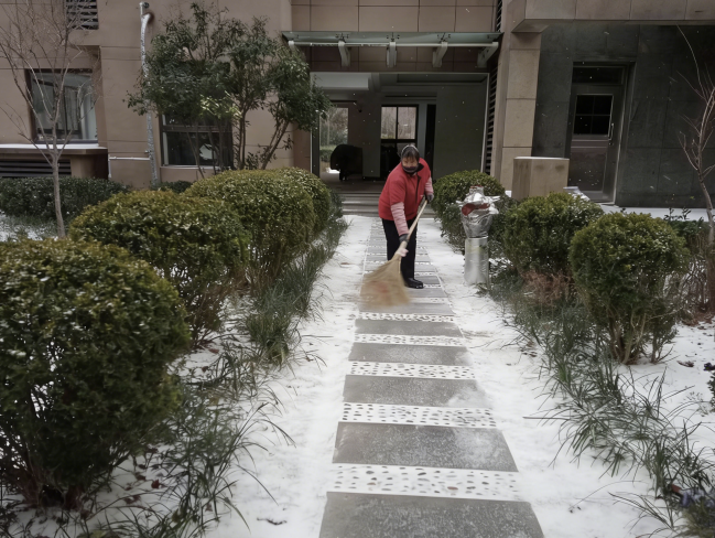 扫雪现场,工作人员手持铁锹、扫帚、雪推板等工具,齐心协力、分工协作,铲的铲、扫的扫、推的推,一派热火朝天的忙碌景象。大家不惧严寒,干劲十足,重点对路口坡道、台阶拐角等易滑地段进行反复清理,确保不留死角、不留隐患。同时,街道充分发挥网格化管理优势,发动各社区网格员、物业人员及热心居民加入扫雪队伍,形成“干群联动、全民参与”的良好氛围。经过数小时的奋战,辖区各主要道路、居民小区出入口的积雪被全部清理干净,为群众铺就了一条安全畅通的“暖心路”。