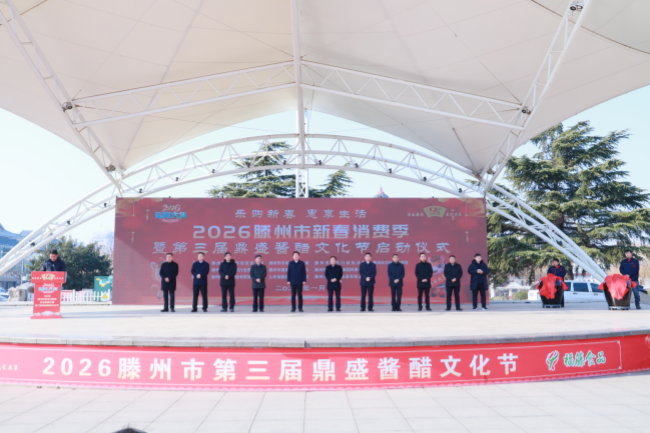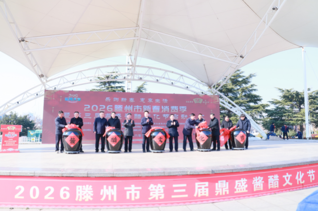 仪式最后,主席台领导共同启动“2026滕州市新春消费季暨第三届鼎盛酱醋文化节”。