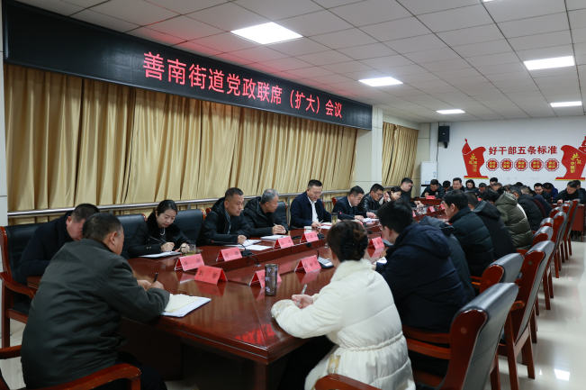 2月2日,善南街道召开党政联席(扩大)会议。街道全体领导干部、各社区(片区)书记、执法中队以及相关岗位负责同志参加会议。