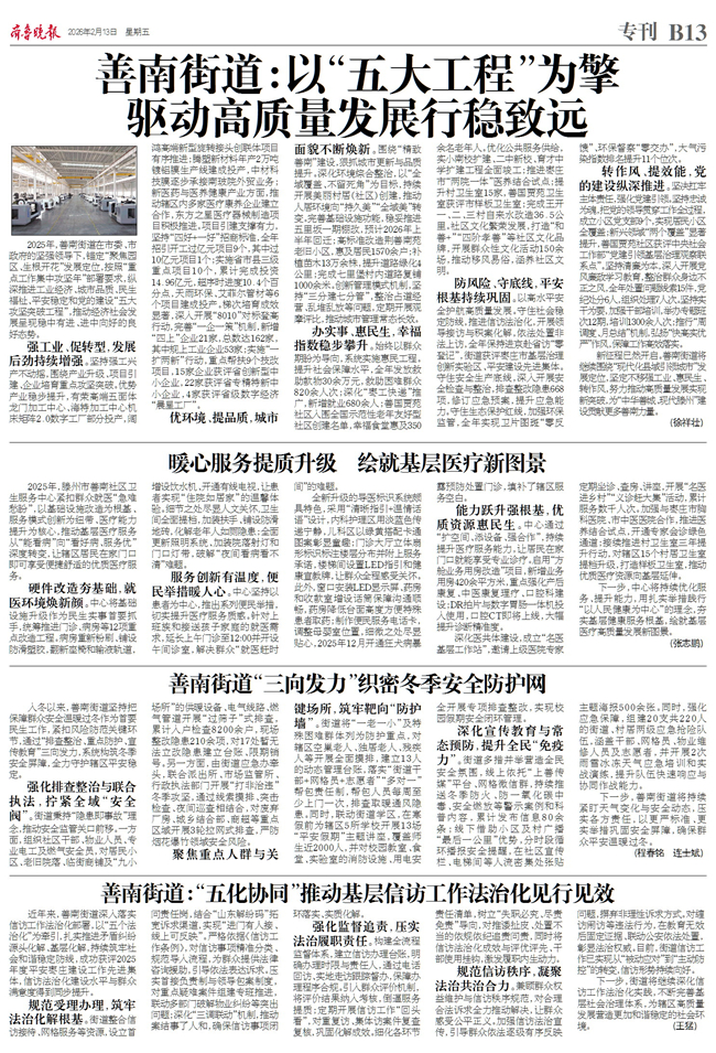 入冬以来,善南街道坚持把保障群众安全温暖过冬作为首要民生工作,紧扣风险防范关键环节,通过“排查整治、重点防护、宣传教育”三向发力,系统构筑冬季安全屏障,全力守护辖区平安稳定。